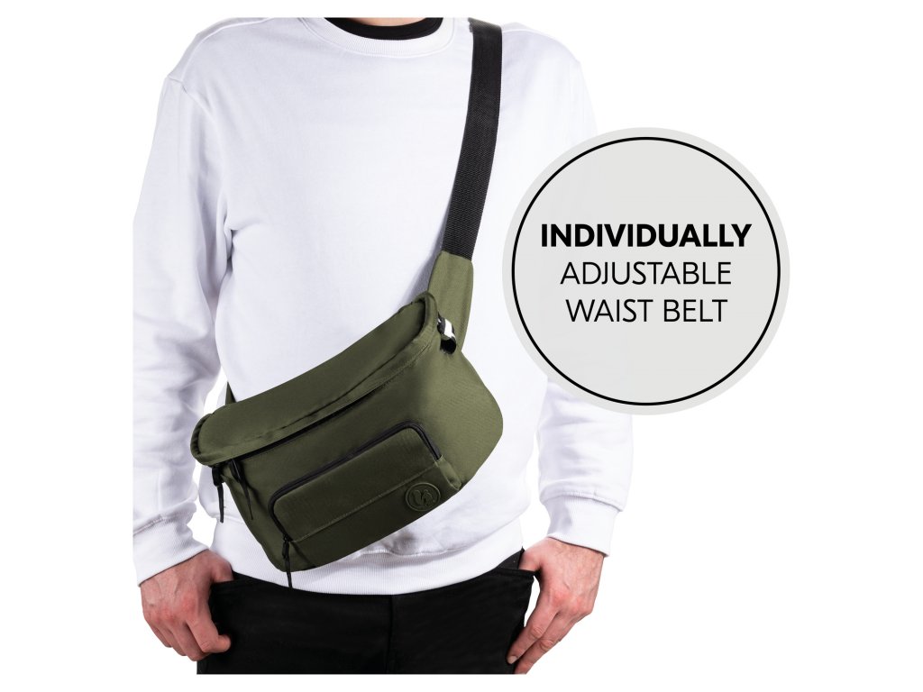 NASTAVITEĽNÝ PÁS // Ak chcete tašku nosiť ako tašku cez rameno alebo ako ľadvinku okolo bokov, stačí nastaviť široký popruh a môžete vyraziť.