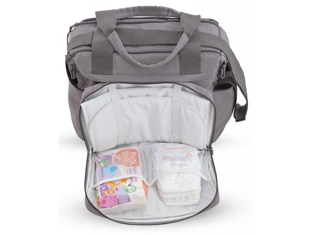 Komfortná veľmi priestranná multifunkčná a rozoberateľná taška s veľkými priehradkami, ktorá pojme všetko, čo rodičia pre svoje dieťa na cestách potrebujú mať po ruke. Vybavená prebaľovacou podložkou a odnímateľnou priestrannou listovou kabelkou, ktorá je ideálna pre krátke výlety.