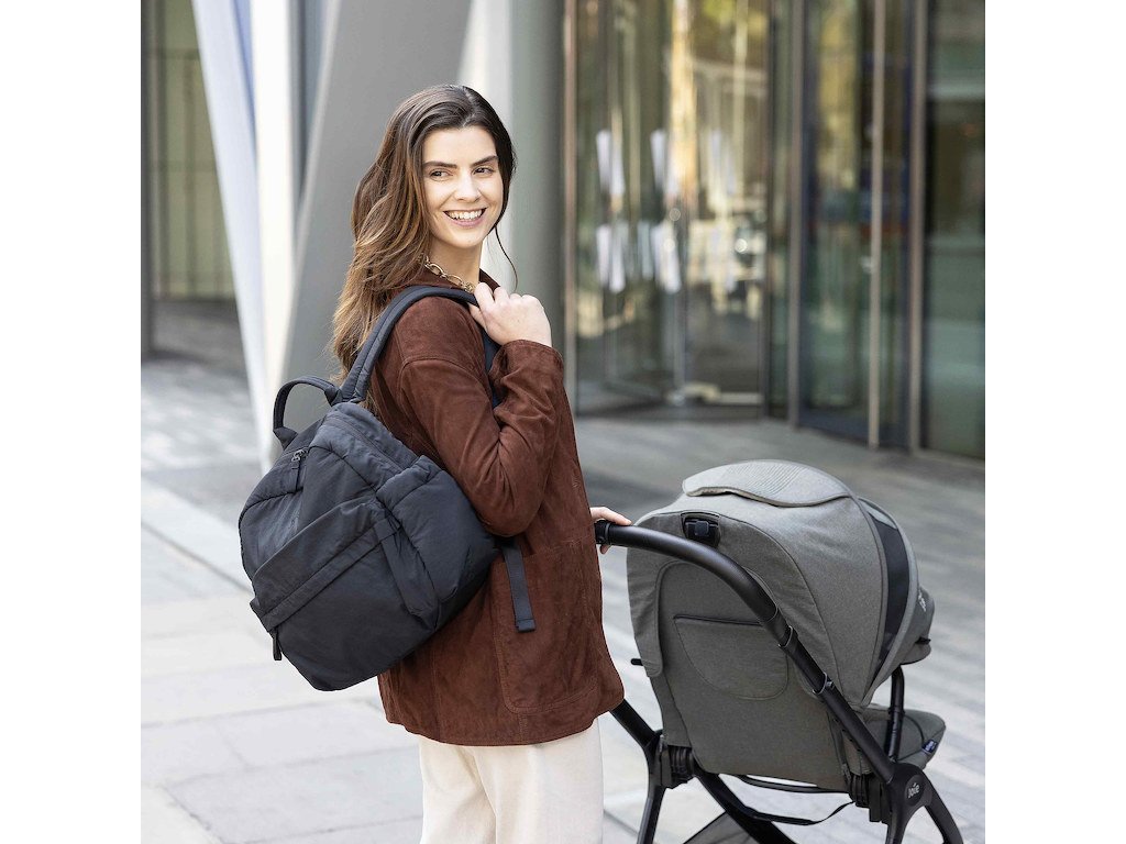 Súčasťou balenia je umývateľná prebaľovacia podložka na prebaľovanie na cestách. Predné vrecko na zips uľahčuje prístup k veciam, ktoré chcete mať vždy po ruke. Materiál odpudzuje vodu a chráni obsah batohu aj pri nepriaznivom počasí.