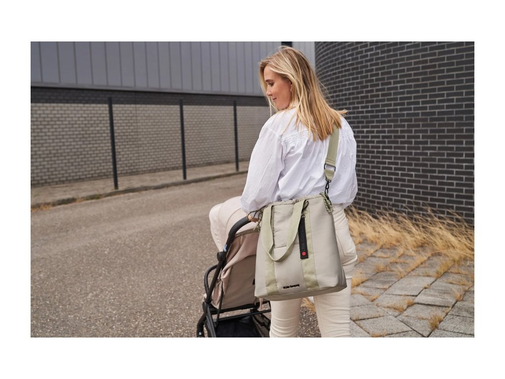 Štýlová taška Malmö v zelenej farbe, módny popruh cez rameno, zaťahovacie ozdobné šnúrky v hornej časti a mnoho praktických priehradok. Vrátane prebaľovacej podložky.
