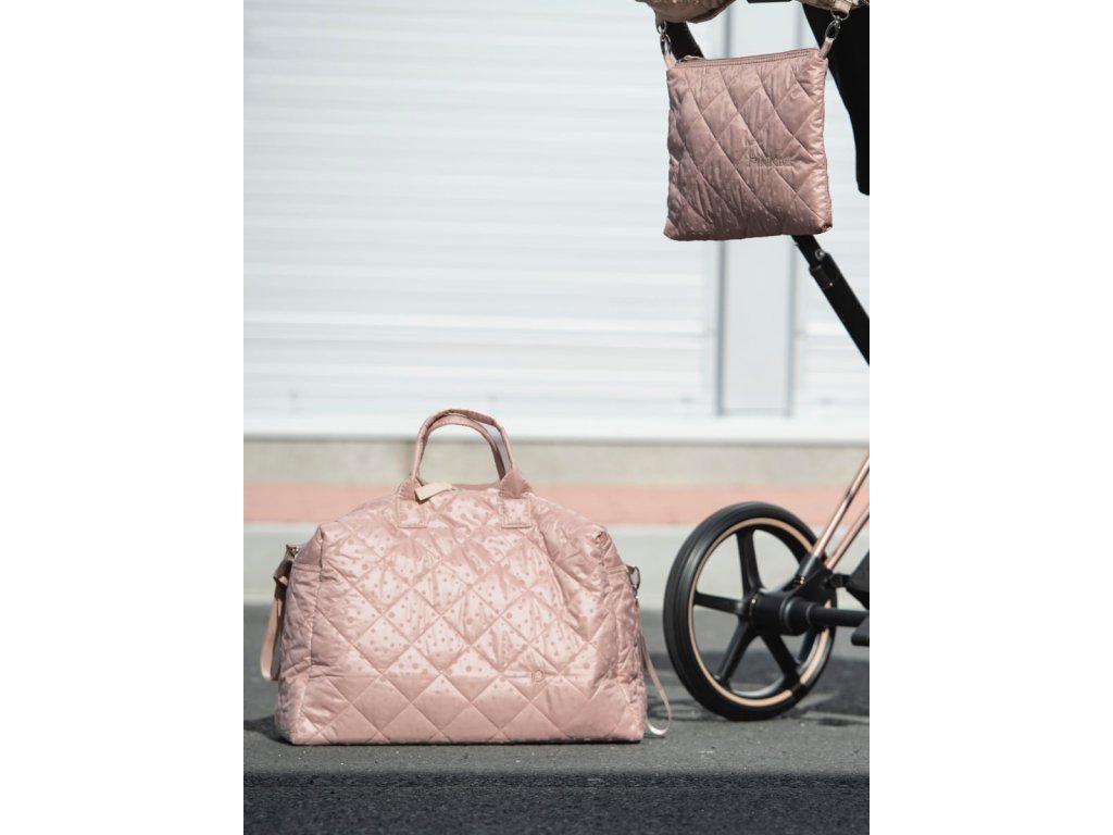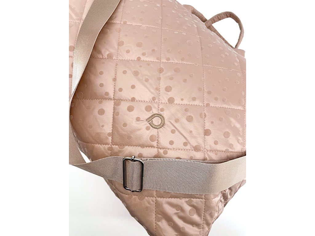 Taška, ktorá je vhodná na bežné nosenie.Kabela je veľmi ľahká, pritom je vyrobená z polstrovaného materiálu a navyše má ešte spevnené dno.Uzatvárateľná zipsom, vo vnútri sú ešte 2 menšie vrecká + očko z gumy na fľaštičku s pitím.