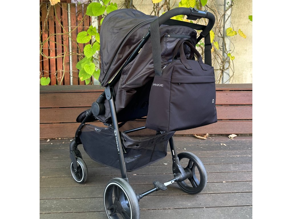 je možné pripnúť ku kočíku, na taške sú všité pútka- možné do nich ľahko pripevniť karabínky (nie sú súčasťou tašky)