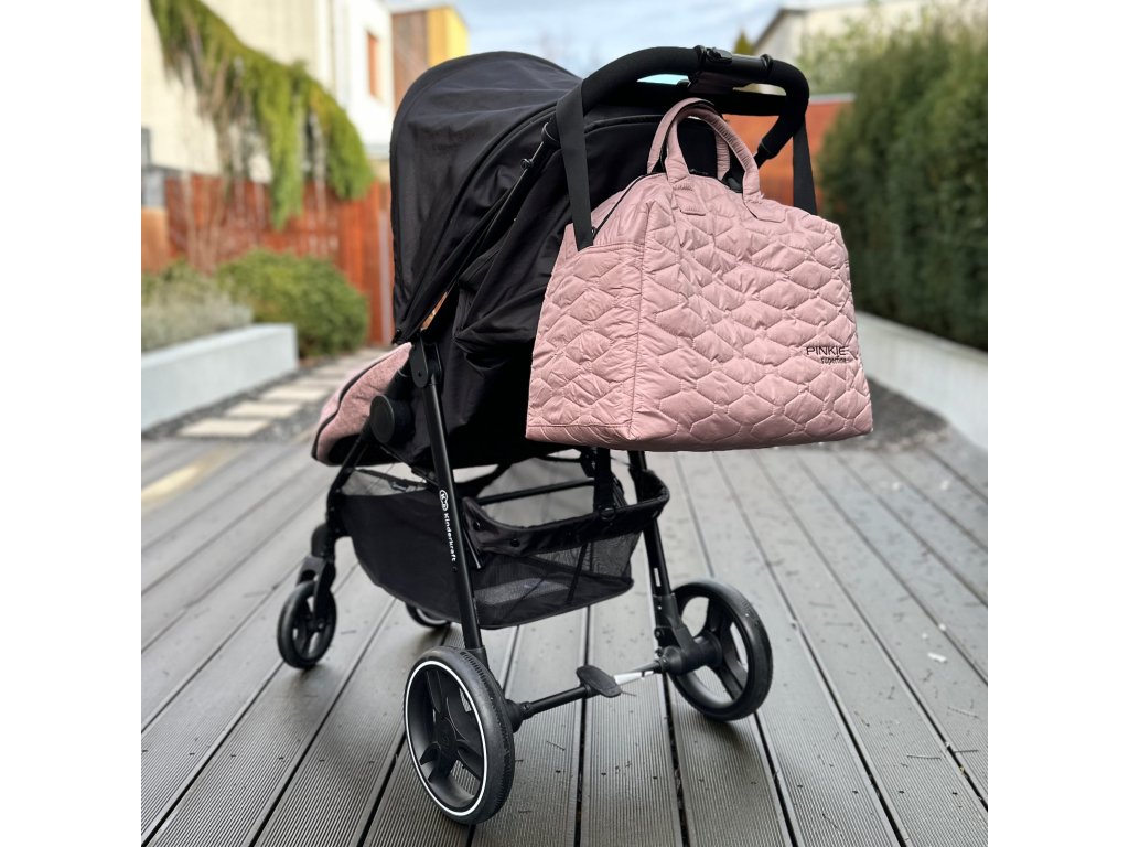 Veľmi objemná taška na kočík, ktorú môžete využívať aj na bežné nosenie.je možné pripnúť ku kočíku, na taške sú všité pútka- možné do nich ľahko pripevniť karabínky (nie sú súčasťou tašky)