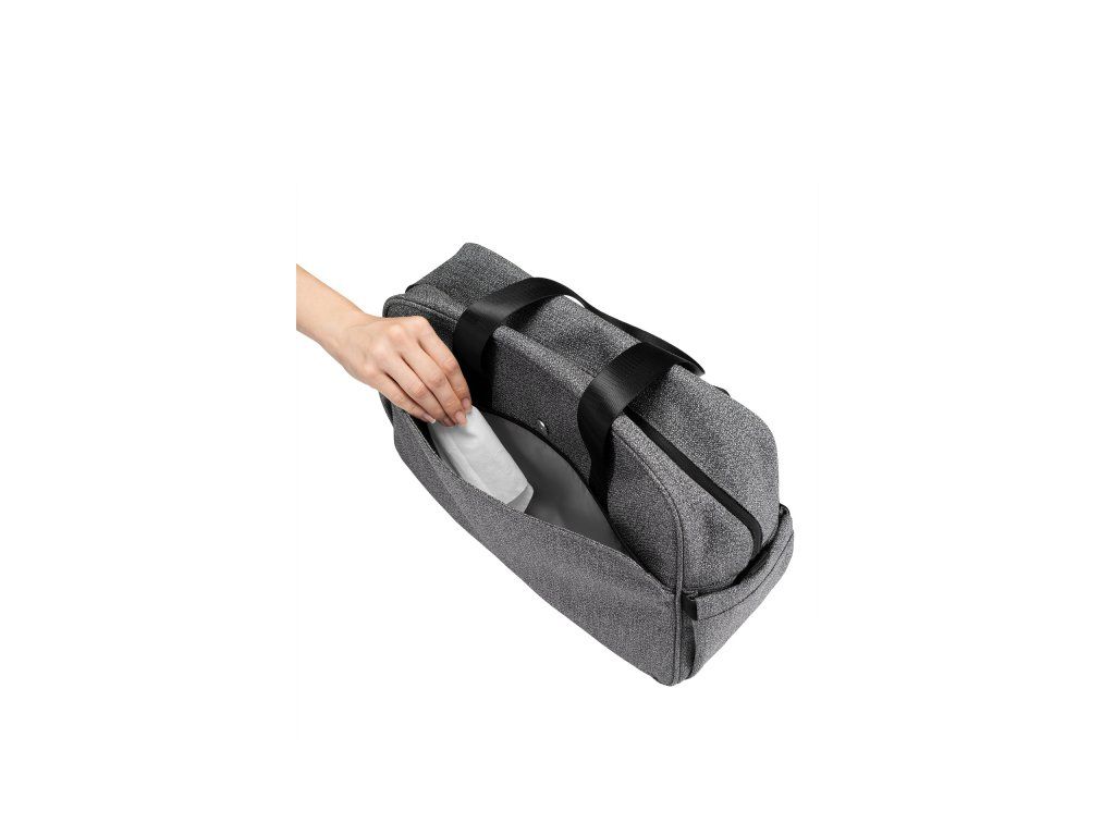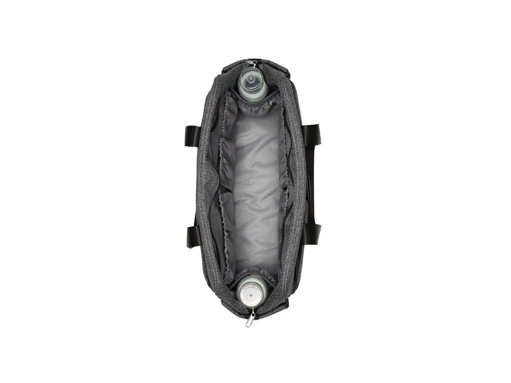 Vnútri tašky nájdete prebaľovaciu podložku, množstvo vreciek a priehradok, vodeodolné vrecko na uloženie vlhkých predmetov a dve termoizolačné vrecká na fľaše. Na vonkajšej strane nájdete vrecko na zips aj priestor na uloženie fľaše.