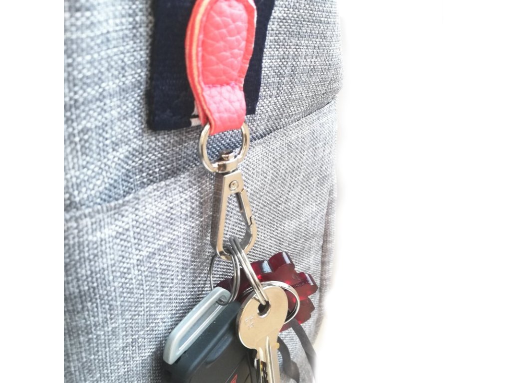 - zvonku 2 vrecká so zipsovým uzáverom a 2 bočné vrecká s karabínkami napr. na kľúče