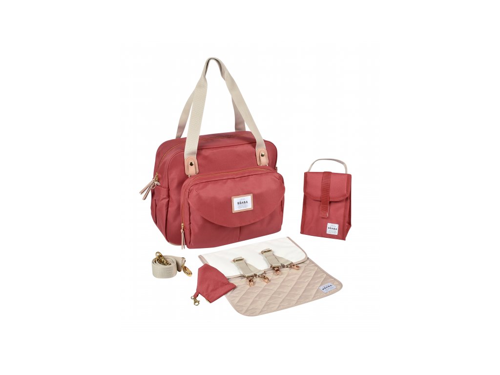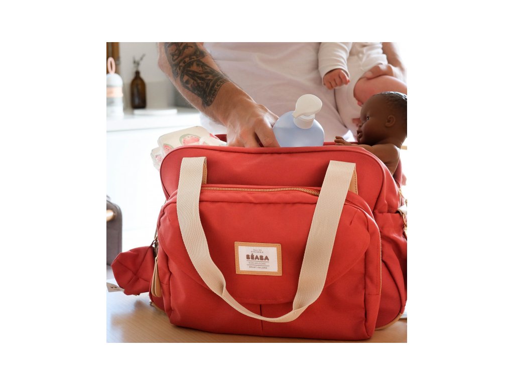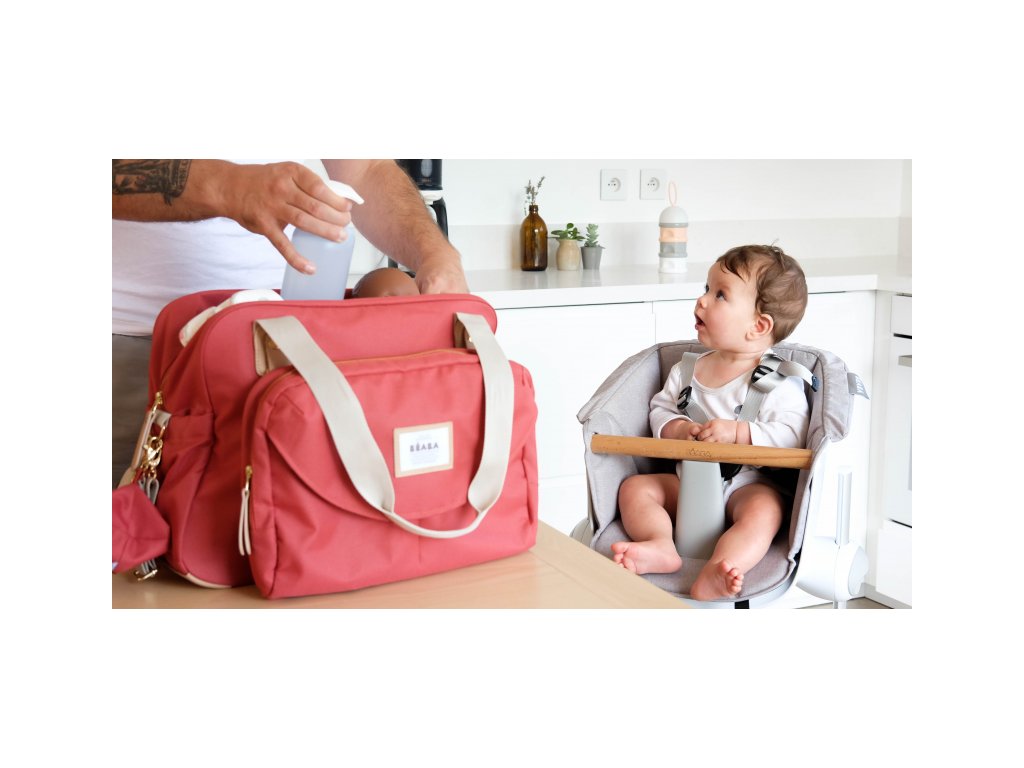 Priestranná prebaľovacia taška 2v1 Beaba Geneva vám zjednoduší a spríjemní cestovanie s bábätkom. Oddeliteľné puzdro na prehľadné ukladanie peňaženky, mobilu, kľúčov a pod. v prednej časti ponúka maximálnu variabilitu pri používaní tašky. Veľký vnútorný priestor je vybavený niekoľkými vreckami na uloženie potrieb pre dieťa. Súčasťou je aj samostatná priestranná termoizolačná taška na detské jedlo a nápoje, prebaľovacia podložka, závesné antibakteriálne puzdro na cumlík a dva úchyty na zavesenie na madlo kočíka.