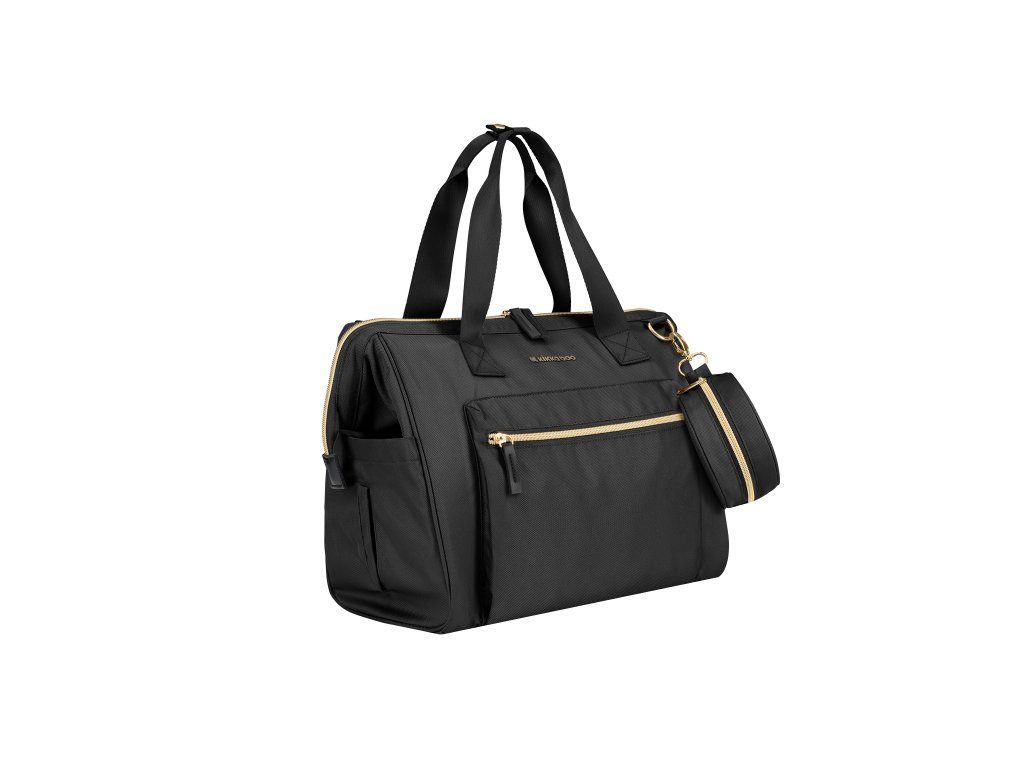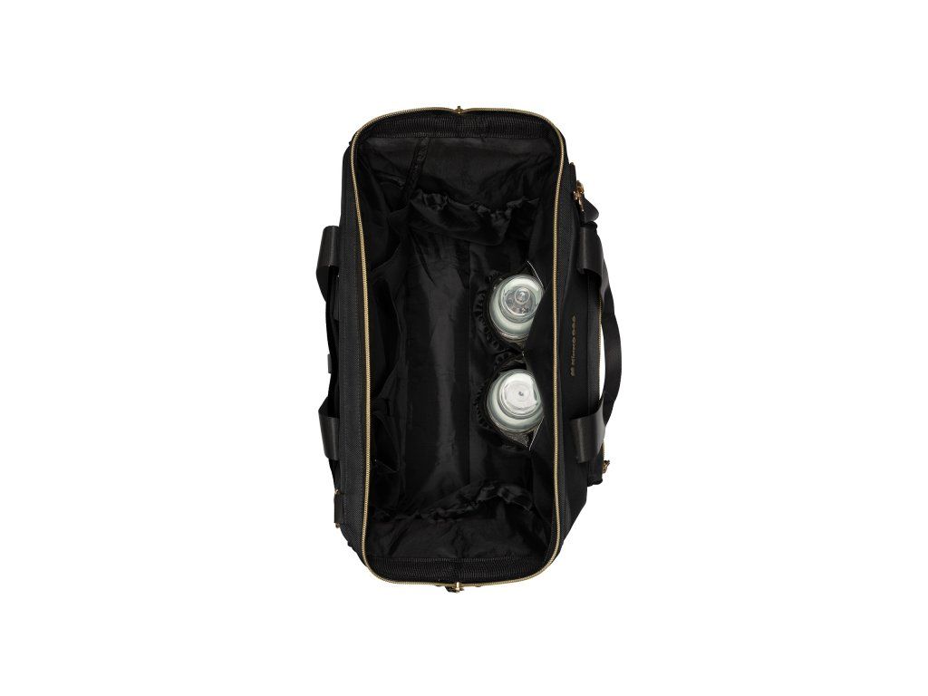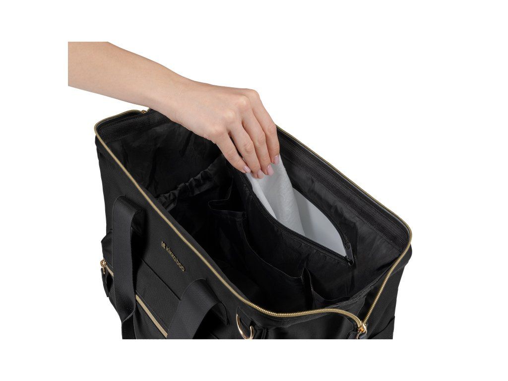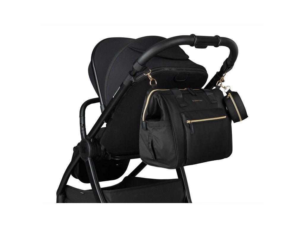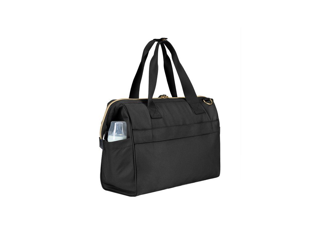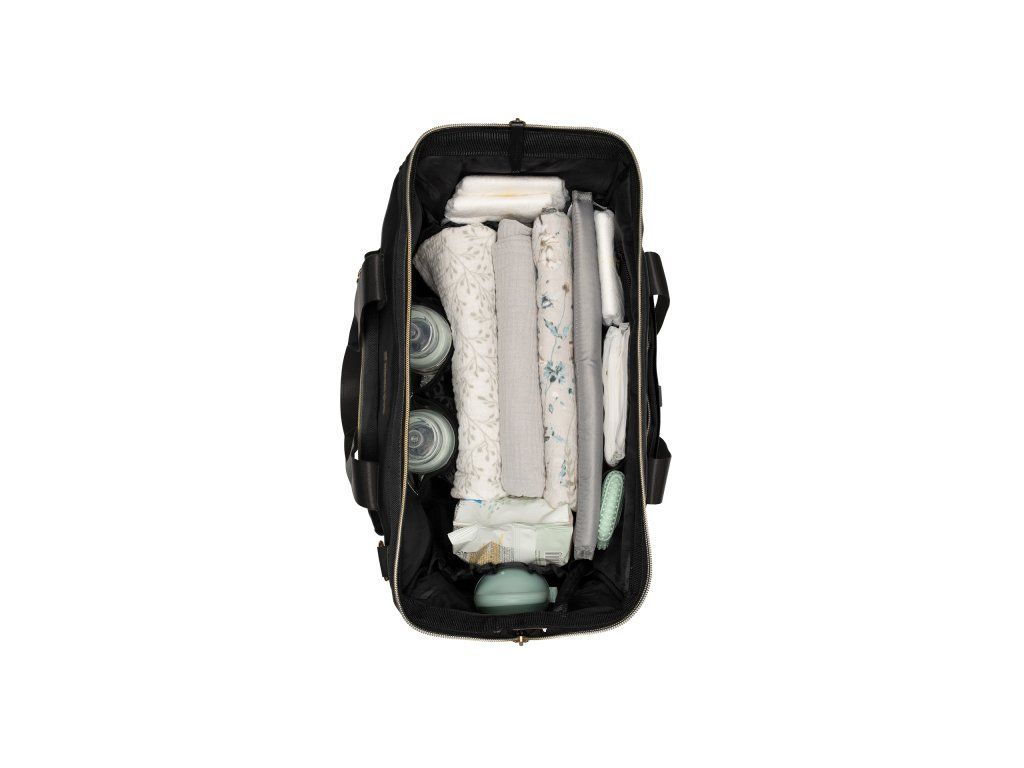 Vnútri tašky nájdete množstvo vreciek a priehradok, vodeodolné vrecko na uloženie vlhkých predmetov a dve termoizolačné vrecká na fľaše. Široký spôsob otvárania tašky uľahčuje orientáciu v uloženom obsahu. Na vonkajšej strane nájdete vrecká s uzatváraním na zips aj vrecko na uloženie fľaše. Súčasťou tašky je aj odnímateľné puzdro na drobnosti a prebaľovacia podložka.