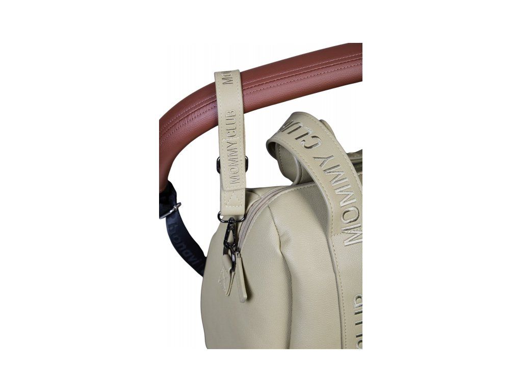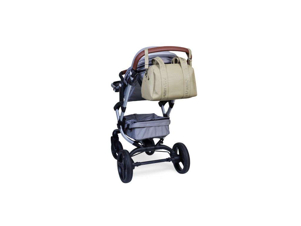 Prebaľovacia taška s uzatváraním na zips je vybavená držadlami na nosenie v ruke, popruhom na nosenie cez rameno aj úchyty na zavesenie na kočík.