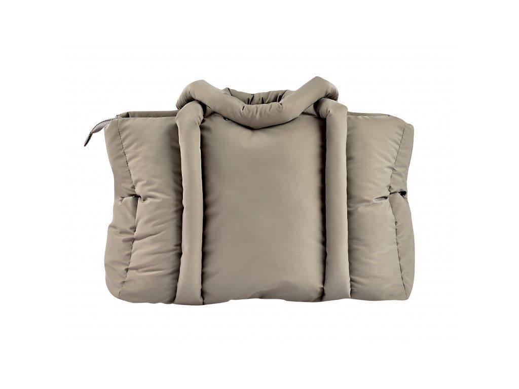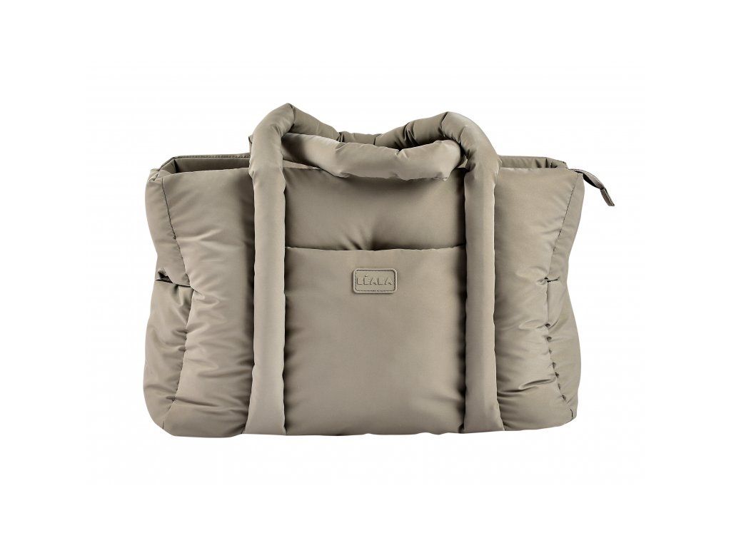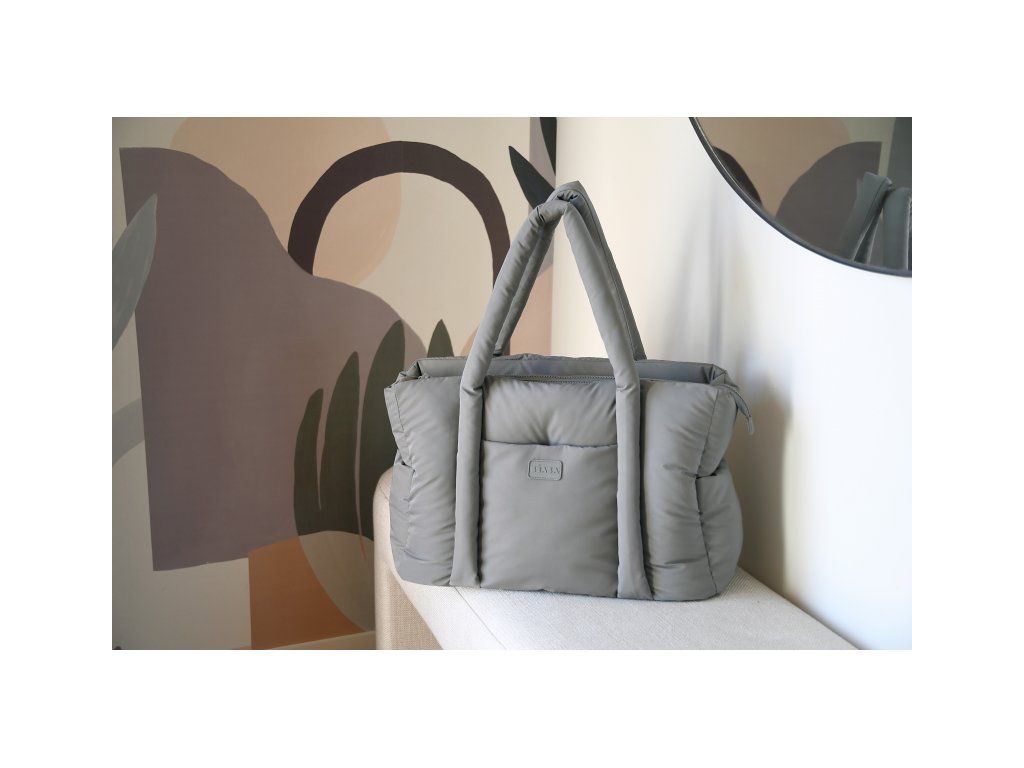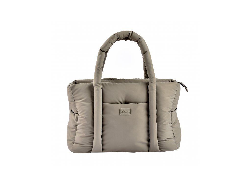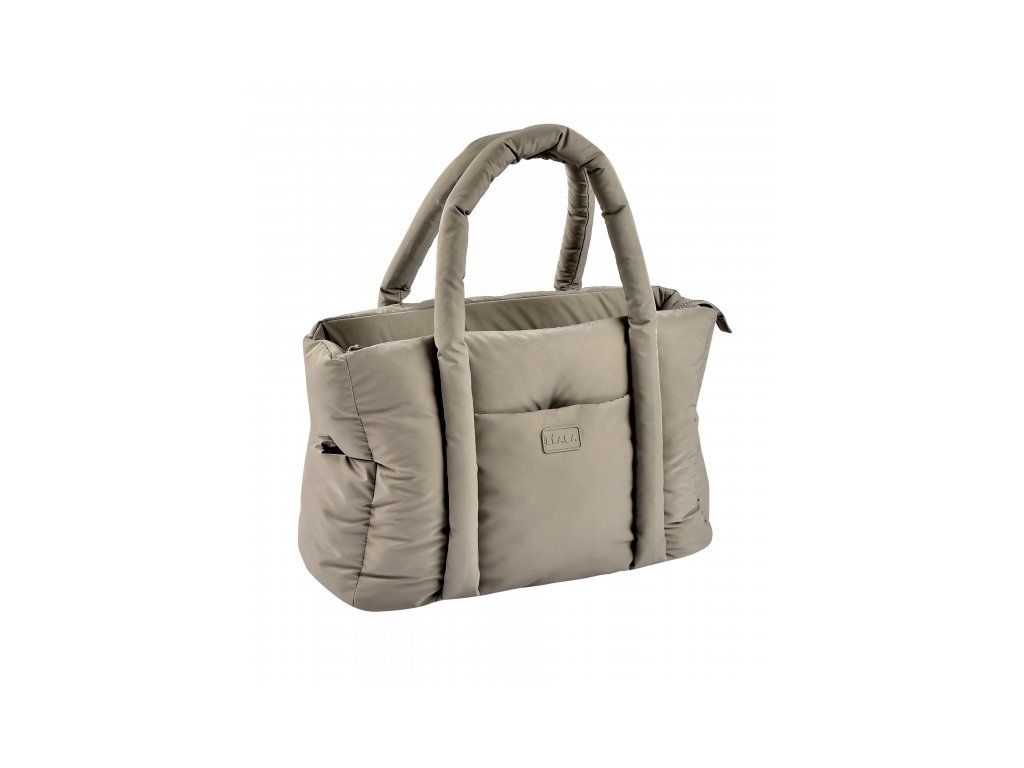 Dlhé držadlá umožňujú nosenie v ruke aj cez rameno, priložené úchyty ponúkajú možnosť zavesenia na rukoväť kočíka. Taška sa uzatvára na zips.