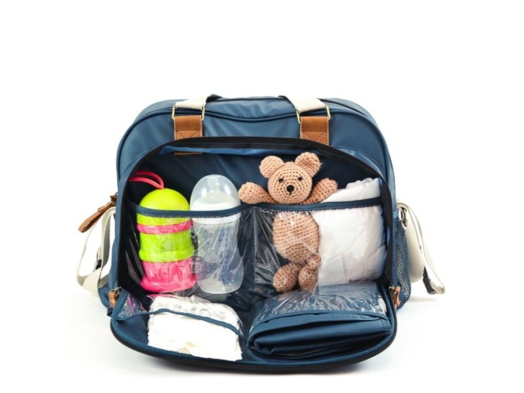 - funkčná taška s mnohými priehradkami a praktickými doplnkami pre rodičov na cestách