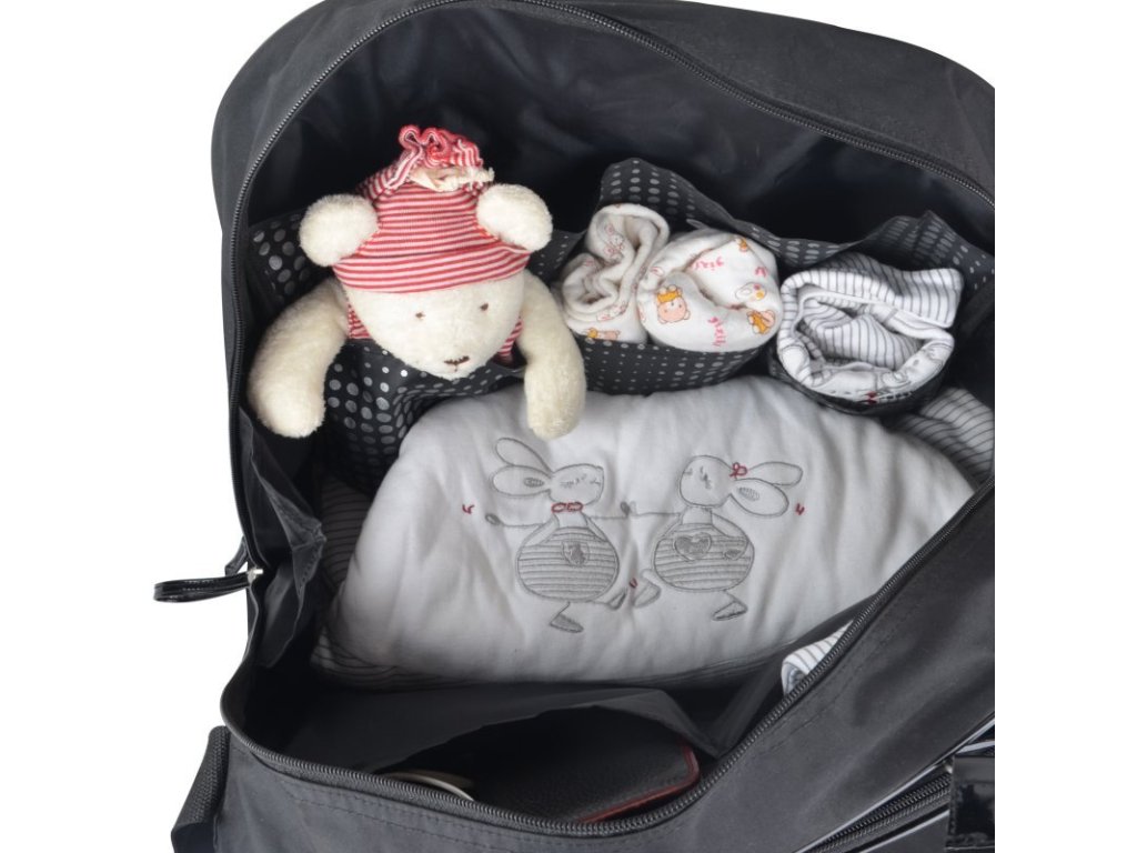 - funkčná taška s mnohými priehradkami a praktickými doplnkami pre rodičov na cestách