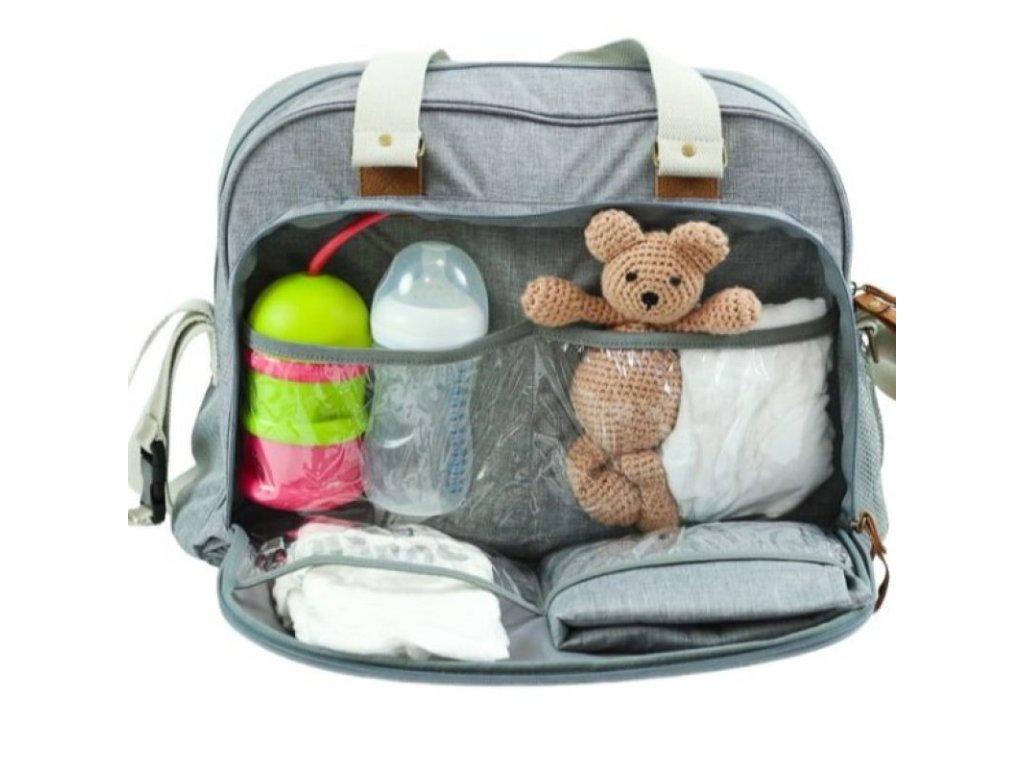 - funkčná taška s mnohými priehradkami a praktickými doplnkami pre rodičov na cestách