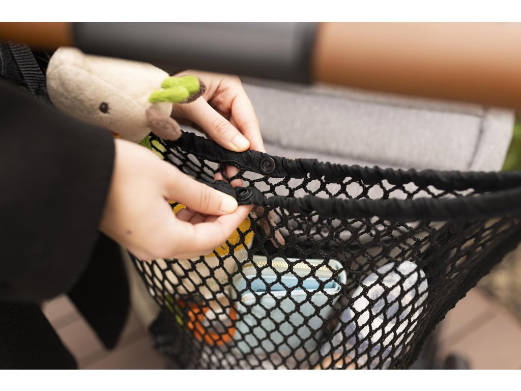Sieťová taška na kočík vám umožní mať všetky potrebné veci po ruke. Dá sa ľahko nainštalovať pomocou suchých zipsov na rukoväť kočíka a je kompatibilný so všetkými modelmi. Taška je vyrobená z odolného a pružného materiálu (nosnosť do 2,5 kg). Je priestranný a vďaka možnosti uzavretia z neho nič nestratíte.
