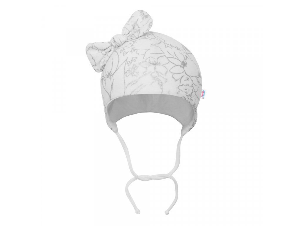 Roztomilá bavlnená čiapočka s mašličkou New Baby NUNU. Čiapočka je celopotlačená zaujímavým vzorom, je krásne tvarovaná na ušká, zaväzuje sa na šnúrky a celá je podšitá bavlnou. Je vyrobená z kvalitnej bavlny a elastanu. Vďaka modernému dizajnu vášmu dieťatku čiapočka veľmi pristane. Zloženie: 95% bavlna, 5% elastan, podšívka-95% bavlna, 5% elastan.Dodatočné parametre