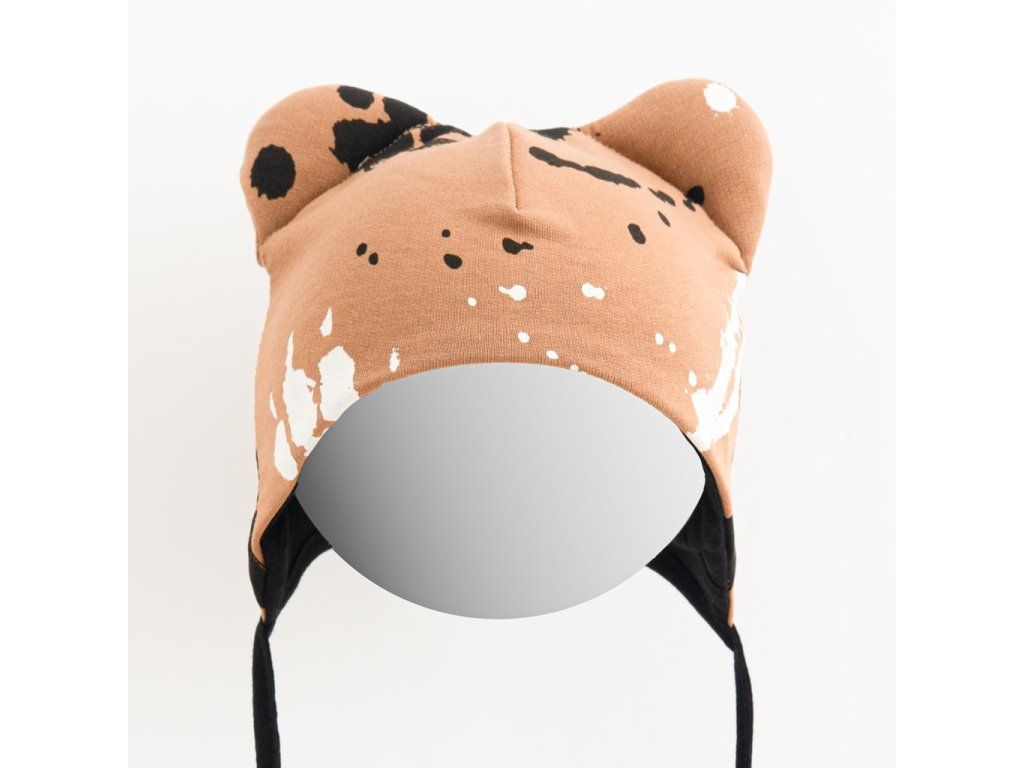 Nápaditá bavlnená čiapočka s uškami New Baby Paw. Čiapočka je celopotlačená detským vzorom, je krásne tvarovaná na ušká, zaväzuje sa na šnúrky a celá je podšitá bavlnou. Je vyrobená z kvalitnej bavlny a elastanu. Vďaka modernému dizajnu vášmu dieťatku čiapočka veľmi pristane. Zloženie: 95% bavlna, 5% elastan, podšívka-95% bavlna, 5% elastan. Vhodné na jar a na jeseň.