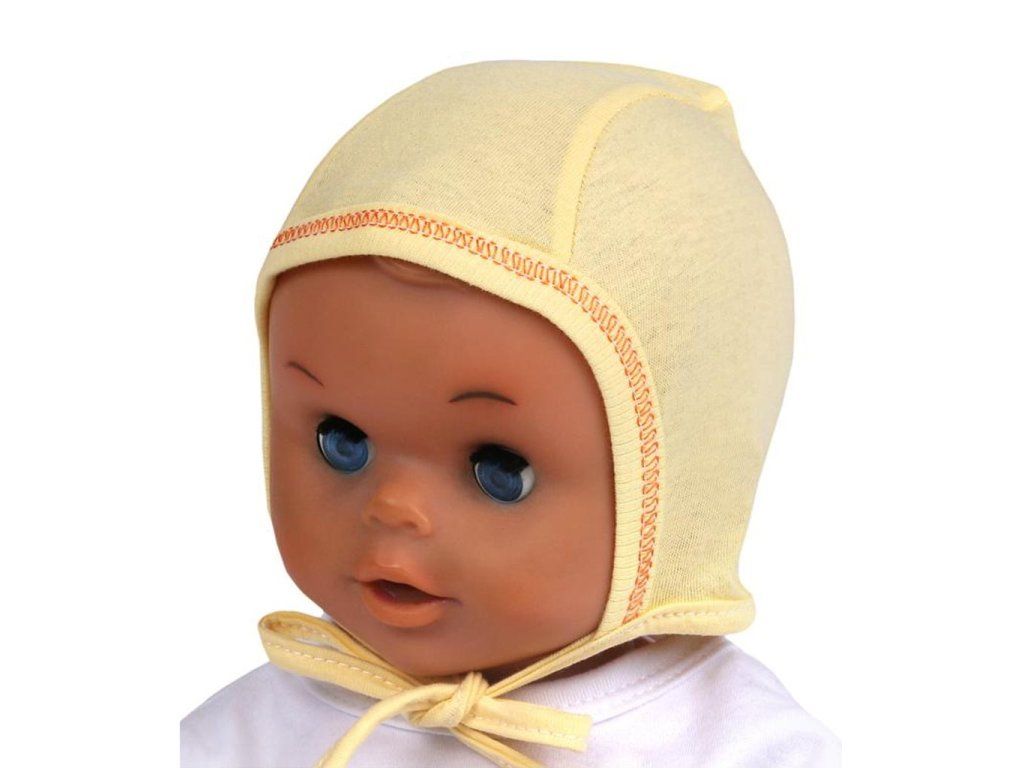 Dojčenská bavlnená čiapočka New Baby klasického strihu so zaväzovaním pod krkom na šnúrky. Obvod okolo hlavičky cca 40 cm. Zloženie: 100% bavlna.Dodatočné parametre