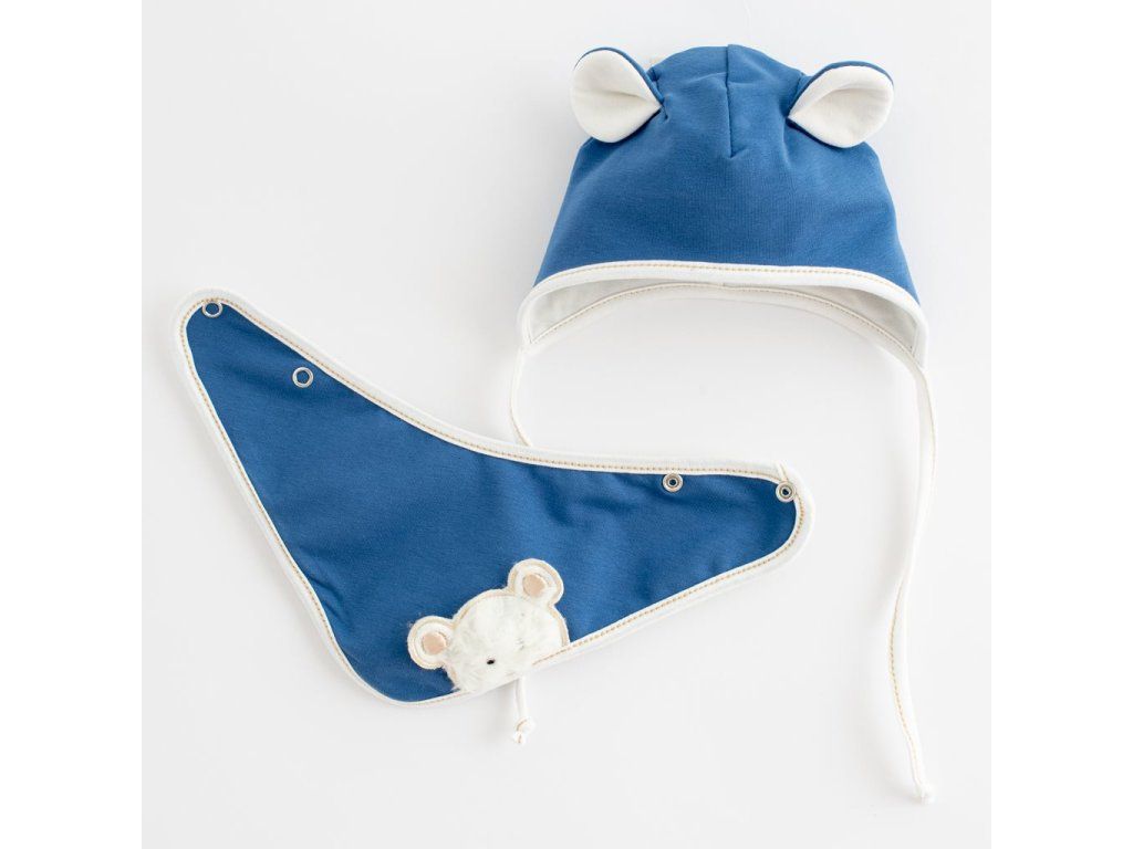 Jarná dojčenská čiapočka so šatkou na krk New Baby Sebastian modrá, 56 (0-3m) - 50712