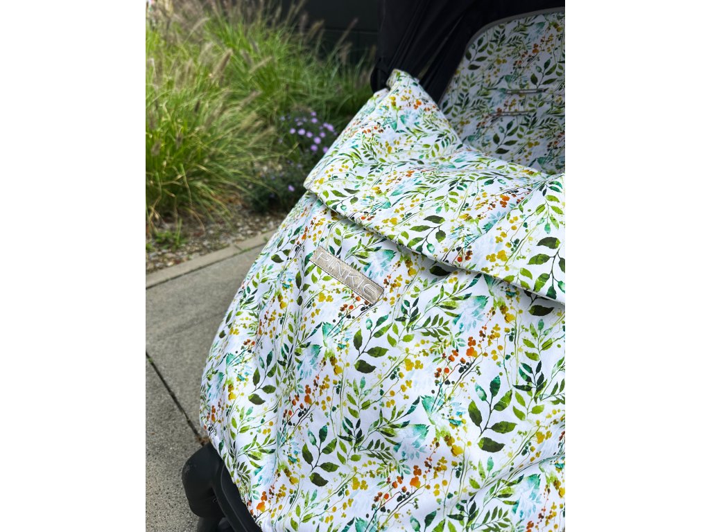 Deka ku kočíku, ktorú môžete v spodnej časti stiahnuť a tým ju použiť ako nánožník. Deka tým bude u nožičiek dieťatka pekne držať.Obe dve strany vyrobené z bavlny