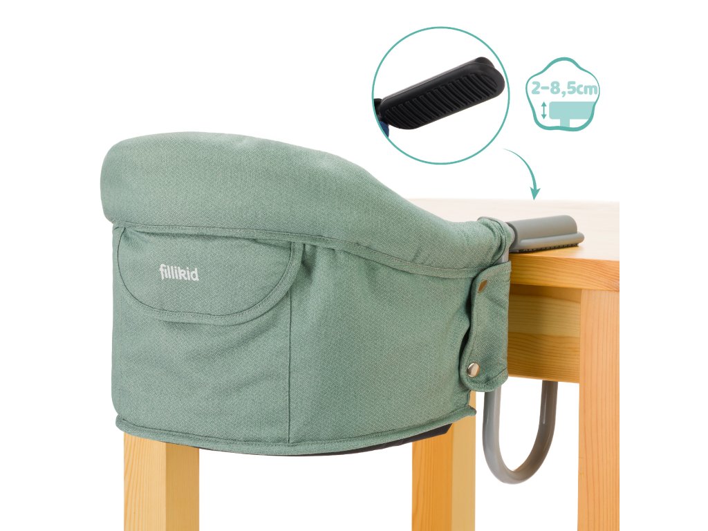 Stoličku je možné jednoducho a bezpečne pripevniť k doskám stolov s hrúbkou až 8,5 cm. Hodí sa na použitie doma, u starých rodičov aj v reštaurácii.
