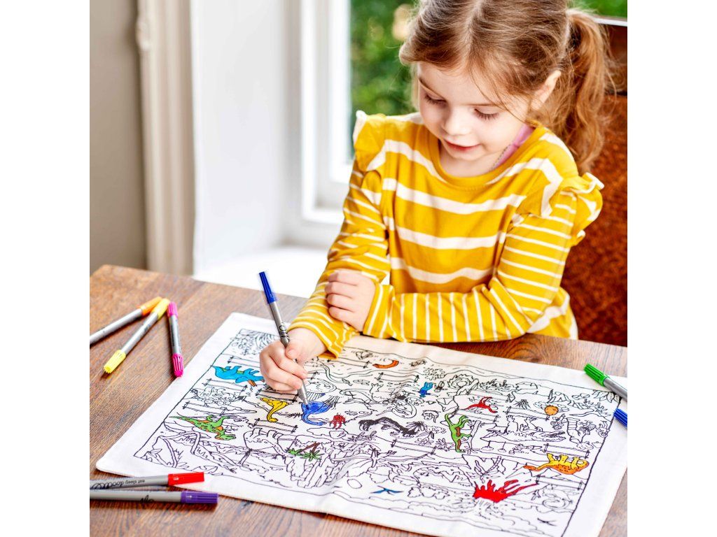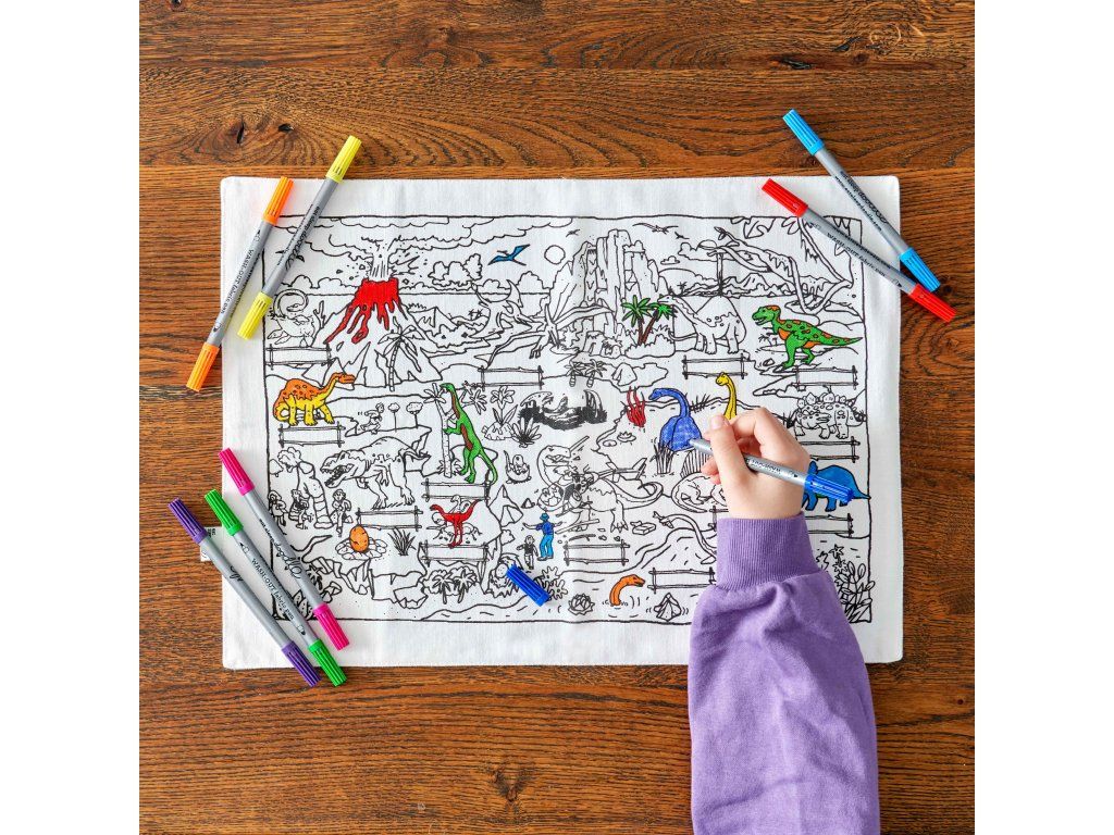Prestieranie na vyfarbenie Dino Vymaľuj a operPrestieranie pre malých objaviteľov dinosaurovS týmto originálnym prestieraním si deti nielen užijú kreatívne vyfarbovanie, ale aj obľúbených dinosaurov. Na plátne sú zobrazené rôzne druhy dinosaurov, ktoré vedia oživiť farbami podľa vlastnej fantázie, a na druhej starne zápisník, ktorý vedia zaplniť vlastnými príbehmi.Ideálny darček pre malých milovníkov farieb a prahistorických zvierat.Prečo je Dino prestieranie jedinečné?Spája zábavu, tvorivosť a vzdelávanieVyrobené z udržateľnej bavlnyObsahuje 10 umývateľných fixiekOpakovane použiteľné – stačí vyprať a tvoriť znovaSkvelý darček pre deti, ktoré milujú dinosaurovDodatočné parametre
