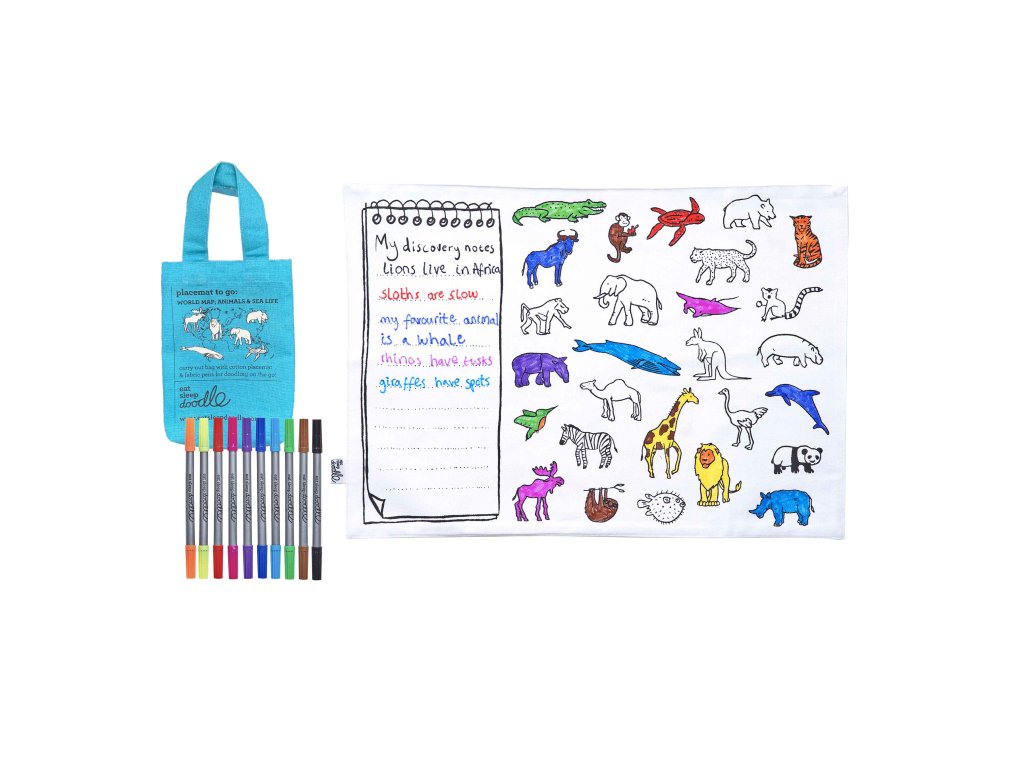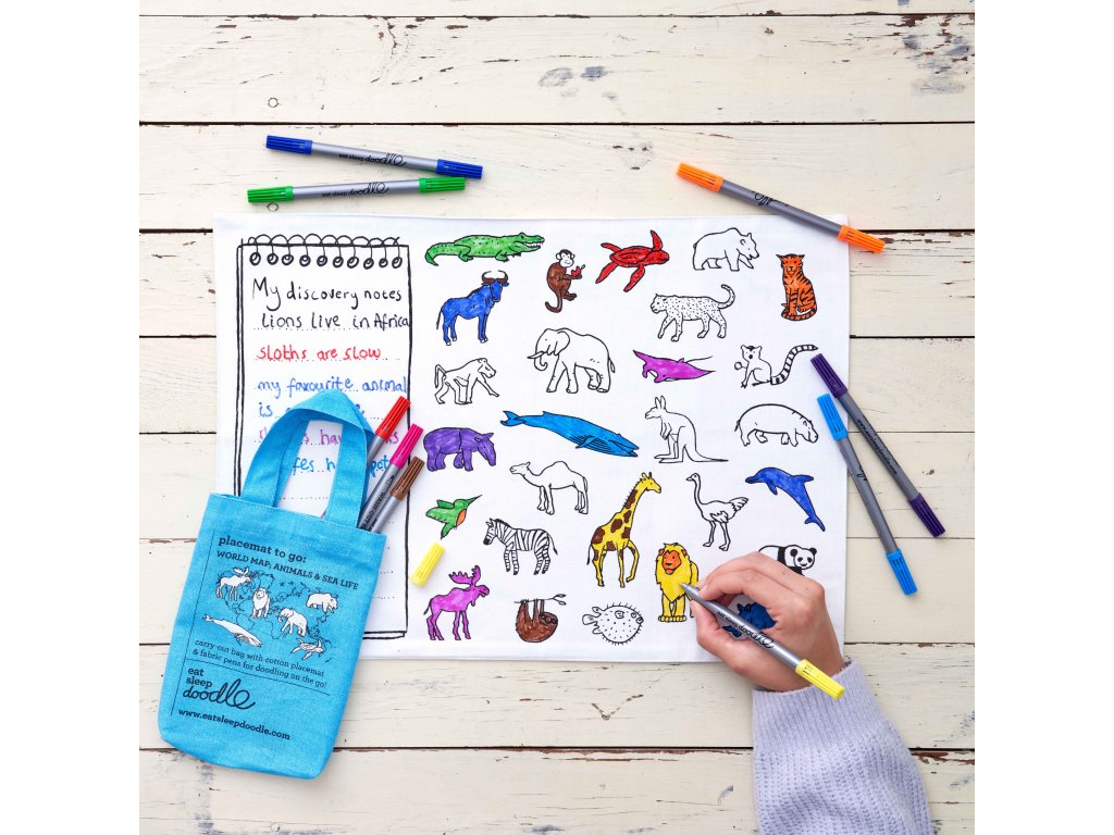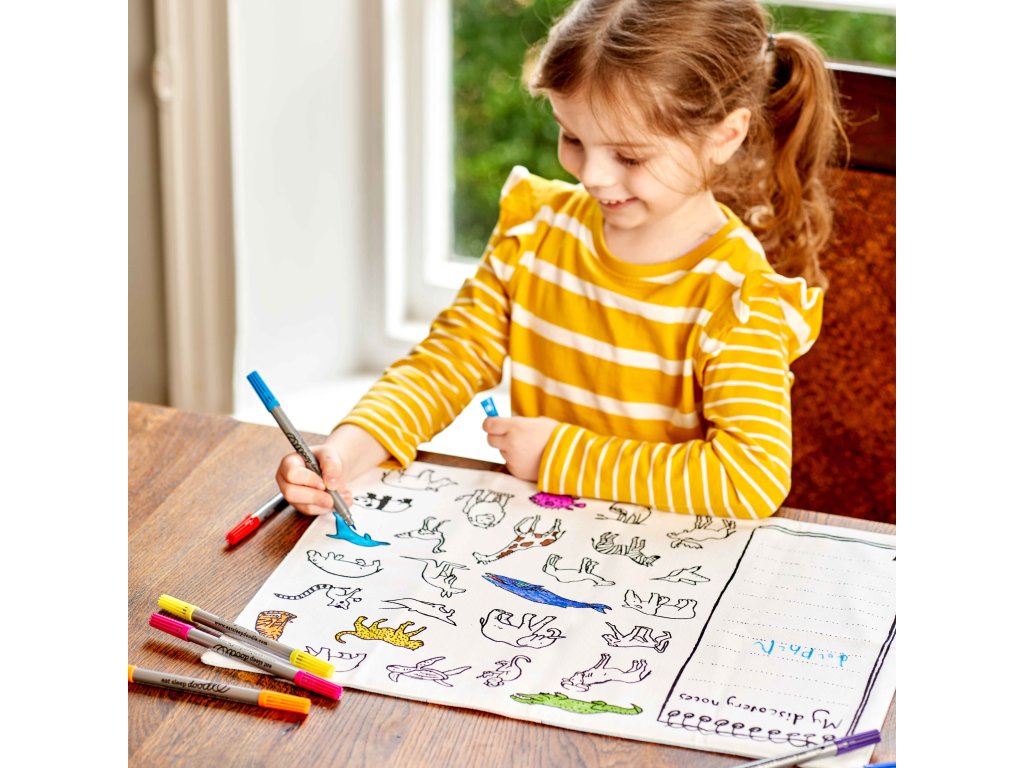 Prestieranie na vyfarbenie World map Vymaľuj a operZábavné učenie o zvieratách a miestach na mapeS týmto originálnym prestieraním si deti nielen užijú kreatívne vyfarbovanie, ale aj spoznajú svet okolo seba. Na mape nájdu rôzne krajiny, oceány a zvieratá, ktoré môžu oživiť farbami podľa vlastnej fantázie. Deti si môžu zapisovať vlastné poznámky či mená zvieratiek, ktoré objavili – zábavný spôsob, ako sa učiť geografiu a prírodu hravou formou. Ideálne pre malých prieskumníkov, ktorí milujú farby a svet.Prečo je World Map prestieranie jedinečné?Spája zábavu, tvorivosť a vzdelávanieVyrobené z udržateľnej bavlnyObsahuje 10 umývateľných fixiekOpakovane použiteľné – stačí vyprať a tvoriť znovaSkvelý darček pre deti, ktoré milujú zvieratá, mapy a dobrodružstváDodatočné parametre