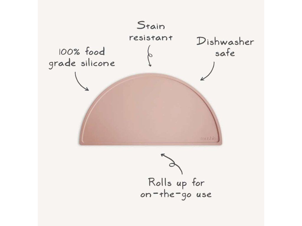 Použite silikónovú podložku od Mushie, aby ste si uľahčili čistenie! Udržujte svoje dieťa a jeho okolie čisté s roztomilými a farebnými podložkami od Mushie. Skombinujte prestieranie s riadom v zodpovedajúcich farbách, aby ste získali elegantný vzhľad počas jedla. Podrobnosti:- Materiál: potravinársky silikón