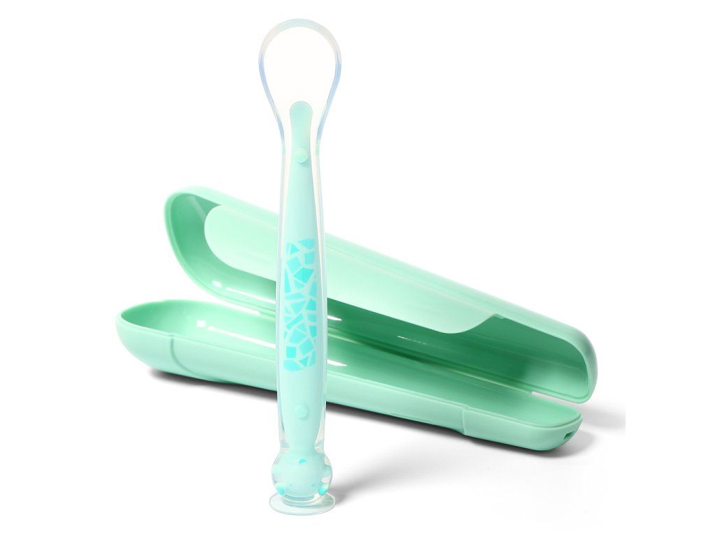 BABYONO Lyžička silikónová s obalom zelená 6m+