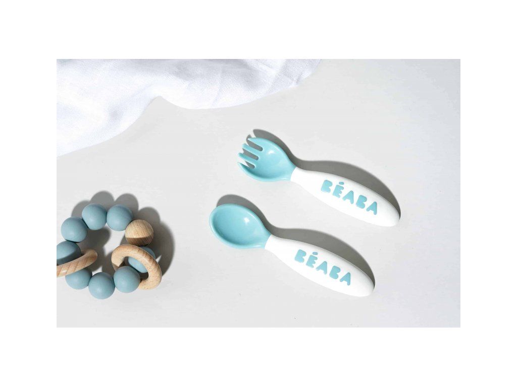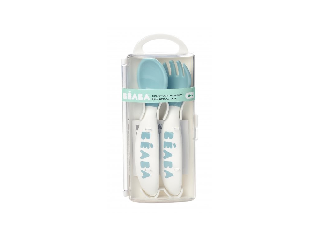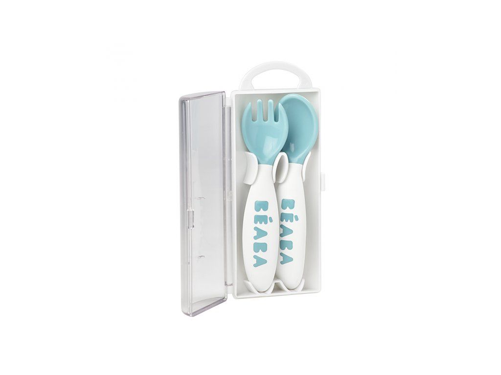 Plastová lyžička a vidlička na prvé samostatné kŕmenie má ideálny tvar pre detské ústa. Tvar držadla uľahčuje dieťaťu držanie lyžičky aj vidličky a je vhodný pre pravákov aj ľavákov. Praktické puzdro umožňuje hygienické prenášanie lyžičky a vidličky napríklad v prebaľovacej taške.