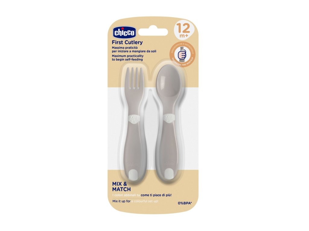 Prvé vlastné príborové sety pre vášho drobca! Chicco Prime Posatíne 12m+ sú navrhnuté špeciálne pre deti od 12 mesiacov, aby mohli začať jesť „ako veľkí“. Set obsahuje ergonomickú vidličku a lyžičku s hravými motívmi, ktoré spríjemnia každý jeden obed či večeru.Vlastnosti: