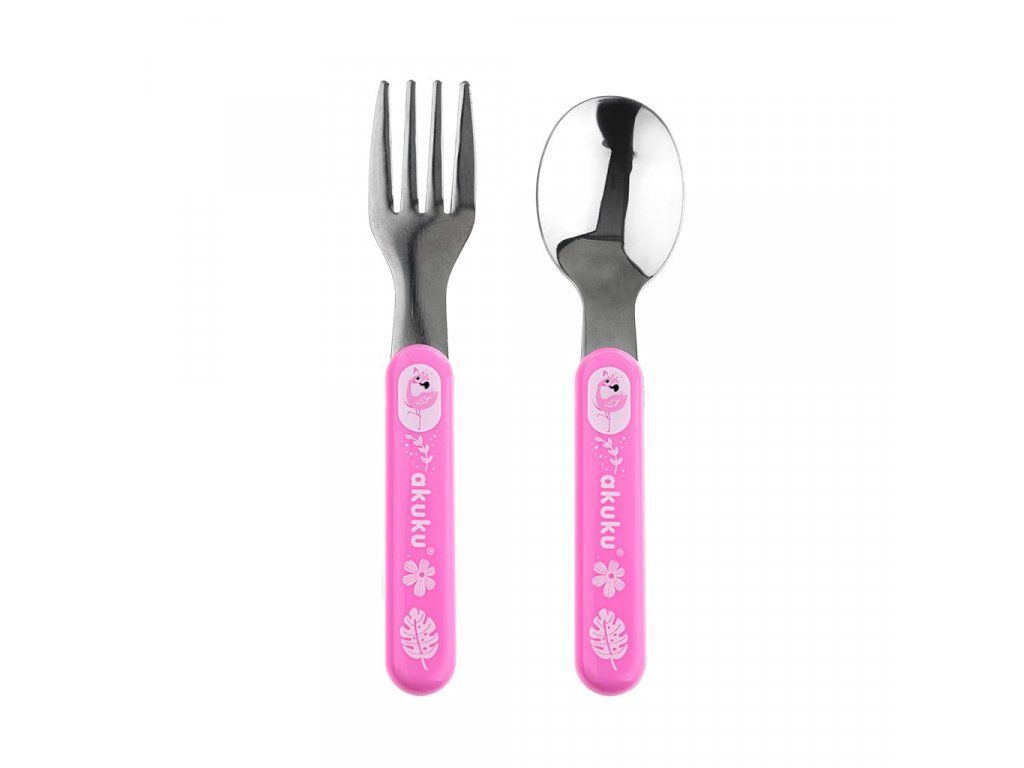 Detská nerezová lyžica a vidlička Akuku rúžová - 44459