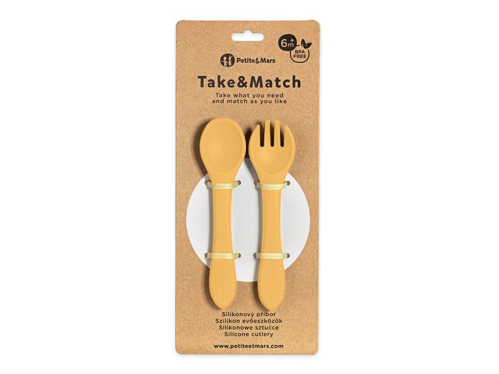 PETITE&MARS Príbor silikónový Take&Match Intense Ochre 6m+