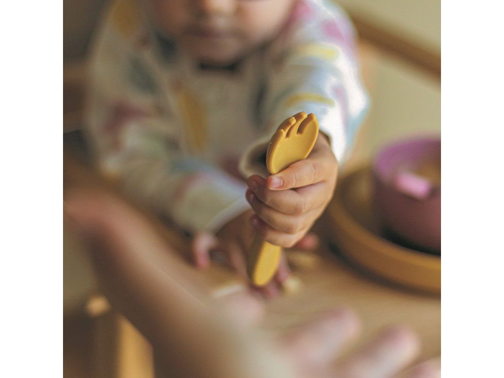 Súprava pozostávajúca z vidličky a lyžičky je celá vyrobená z potravinárskeho silikónu bez obsahu BPA. Vďaka tomu môže vaše dieťa jesť príborom teplé aj studené jedlá. Vďaka pružnému silikónu je príbor ideálny pre citlivé ďasná malého dieťaťa. Príbor je vhodný pre deti od 6 mesiacov, ktoré sa zoznamujú s pestrou stravou, a pre tie, ktoré sa už úspešne učia jesť samy. Zaoblené tvary a malé rozmery uľahčujú dieťatku ich uchopenie a tým aj papanie.