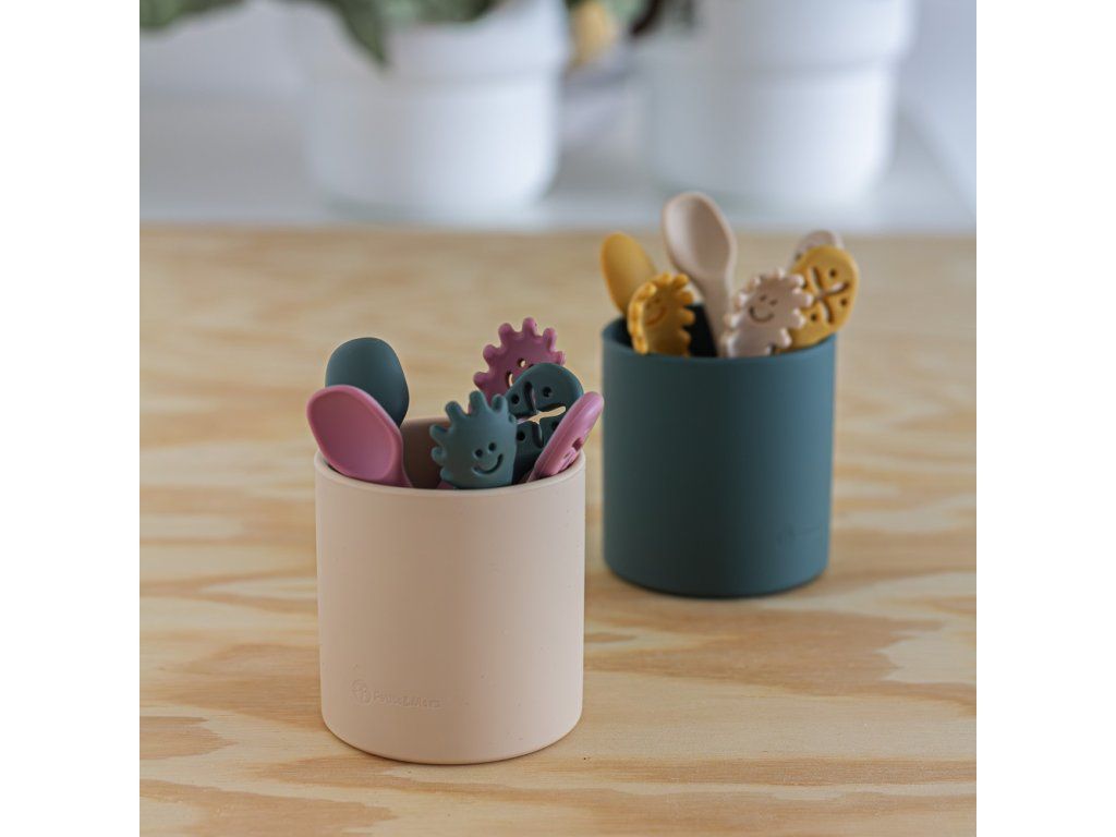 Set je vyrobený z potravinárskeho silikónu bez obsahu BPA. Vďaka tomu môže vaše dieťa s príborom jesť teplé, studené a rôzne konzistencie jedál. Vďaka pružnému silikónu sú lyžičky ideálne pre citlivé ďasná malého dieťaťa. Lyžičky sú vhodné pre deti od 6 mesiacov, ktoré sa zoznamujú s prvými príkrmami, a pre tie, ktoré sa už úspešne učia jesť samy. Zaoblené tvary a malé rozmery uľahčujú dieťatku ich uchopenie a papanie.
