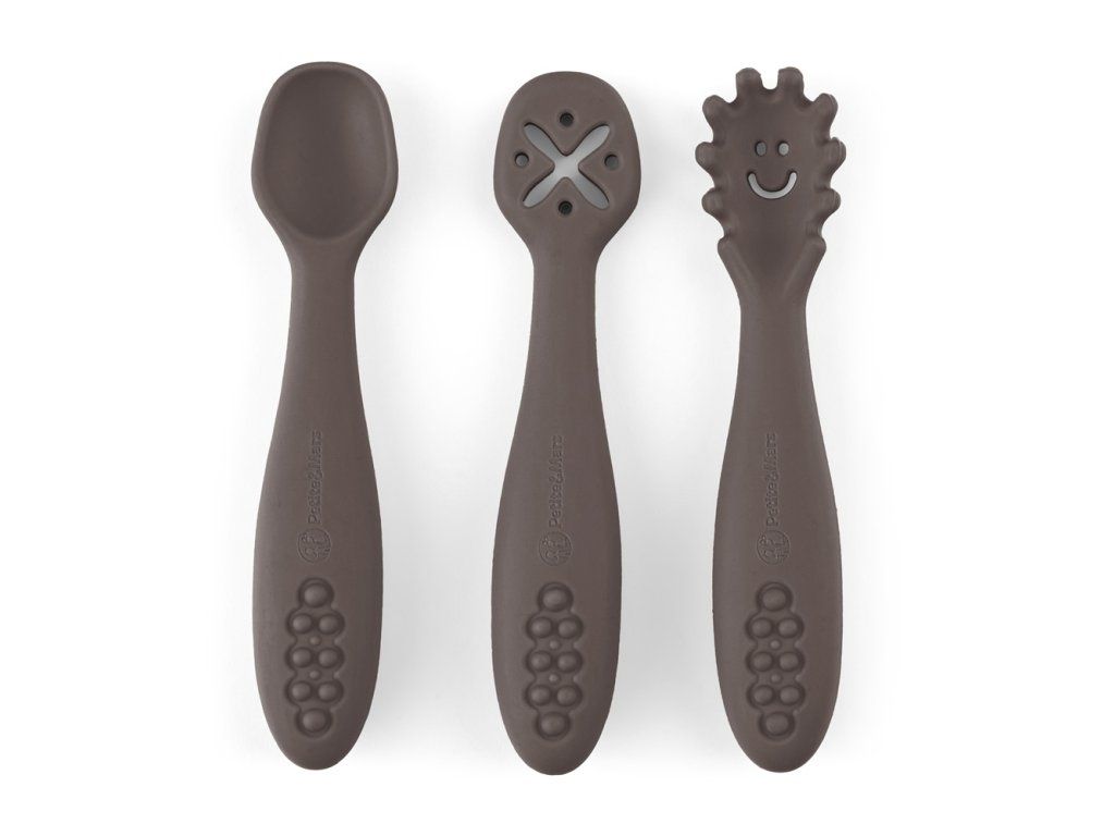 PETITE&MARS Set 3 ks silikónových tréningových lyžičiek Take&Match Bitter Cocoa 6m+