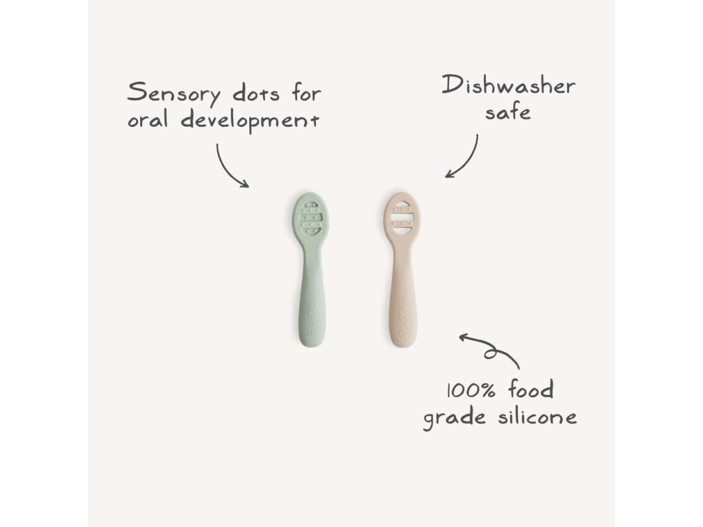 Predstavujeme Mushie’s First Feeding Baby Lyžičky – dokonalí spoločníci na dobrodružnú cestu bábätka k samokŕmeniu! Tieto lyžičky, vyrobené s dôkladným zvážením každého vývojového štádia, sú navrhnuté tak, aby sa jedlo stalo príjemným zážitkom bez stresu pre rodičov aj deti. Lyžica 1. stupňa: Táto lyžica má pevný povrch bez otvorov, čo vytvára ideálne náradie na tenké pyré a jogurty. Absencia otvorov zaisťuje pre najmenších zážitok z kŕmenia bez neporiadku. Lyžička 2. stupňa: Keď vaše dieťatko postupuje k bohatším textúram, lyžička 2. stupňa s otvorenými otvormi hladko nastúpi. Je ideálny na naberanie hustejších jedál, ako sú ovsené vločky a zemiaková kaša. Mushie First Feeding Baby Spoons 2-Pack – detaily:- Odporúčaný vek: 6+ mesiacov