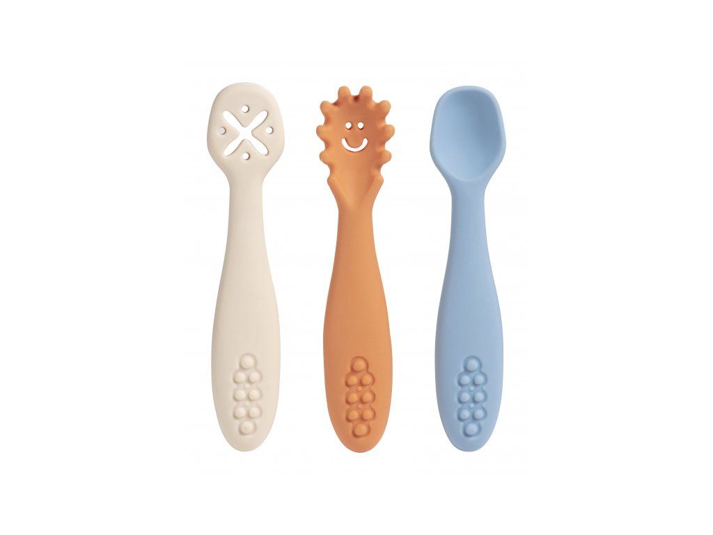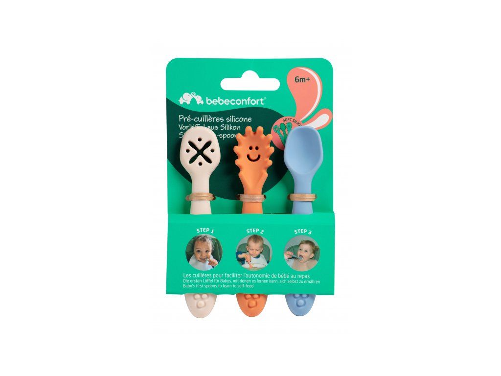Bezpečné, praktické a hravé lyžičky Bebeconfort pomôžu vášmu dieťaťu s prvými krôčikmi k samostatnému stolovaniu! Súprava troch ergonomicky tvarovaných lyžičiek z mäkkého potravinárskeho silikónu je šetrná k citlivým ďasnám a navrhnutá presne pre malé detské ručičky.