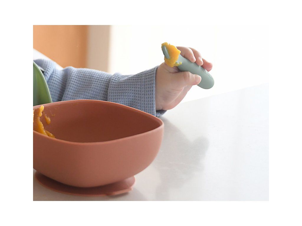 Prvé trénovacie lyžičky silikónové Sage Green / Velvet Grey