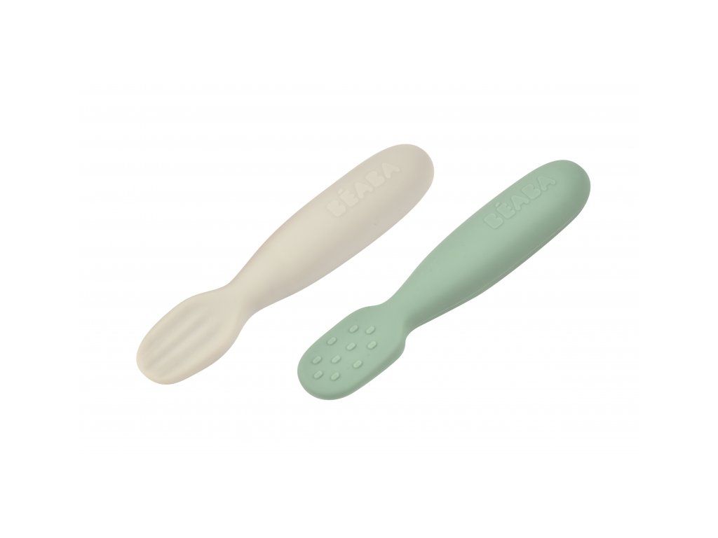 Lyžičky sú vhodné od 4 mesiacov na kŕmenie dieťaťa rodičom, od 6-8 mesiacov už dieťa môže lyžičku držať samo. Krátka, zaoblená rukoväť umožňuje dieťaťu ľahké uchopenie v dlani aj prstami. Ploché obojstranné prevedenie lyžičky zaistí, že príkrm, ktorý dieťa na lyžičku naberie, dokáže doniesť až do úst.