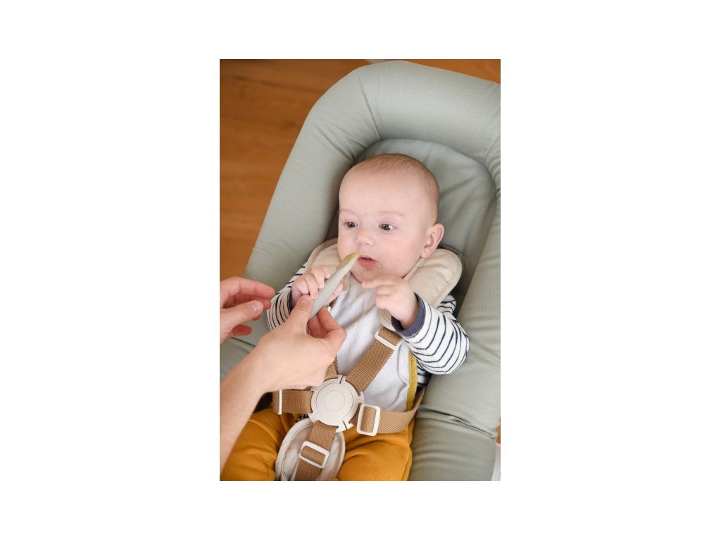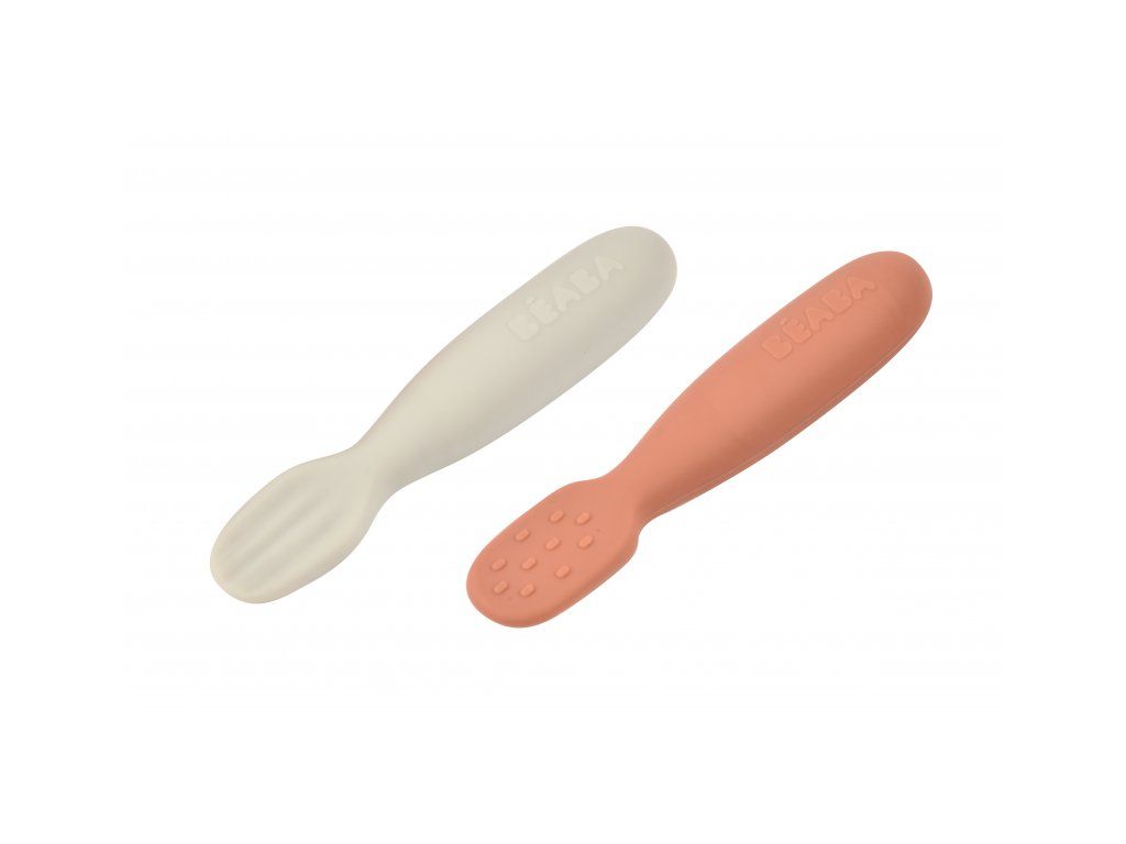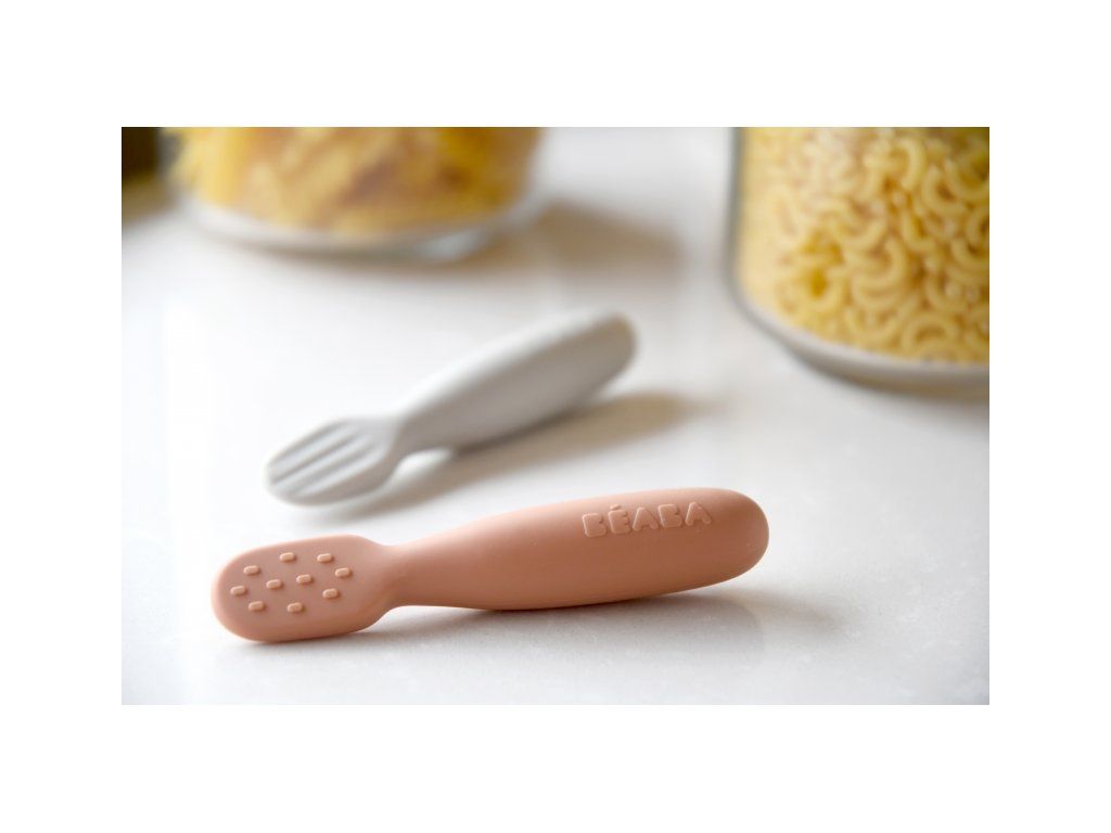 Prvé trénovacie lyžičky boli navrhnuté špeciálne pre bábätká, ktoré sa zoznamujú s prvými príkrmami. Texturované zakončenie lyžičky ponúka dve varianty pre rôzne typy príkrmov - lyžička s pozdĺžnymi vrúbkami je ideálna pre prvé hladké pyré, lyžička s jemnými výstupkami pre hrubší príkrm s malými kúskami.