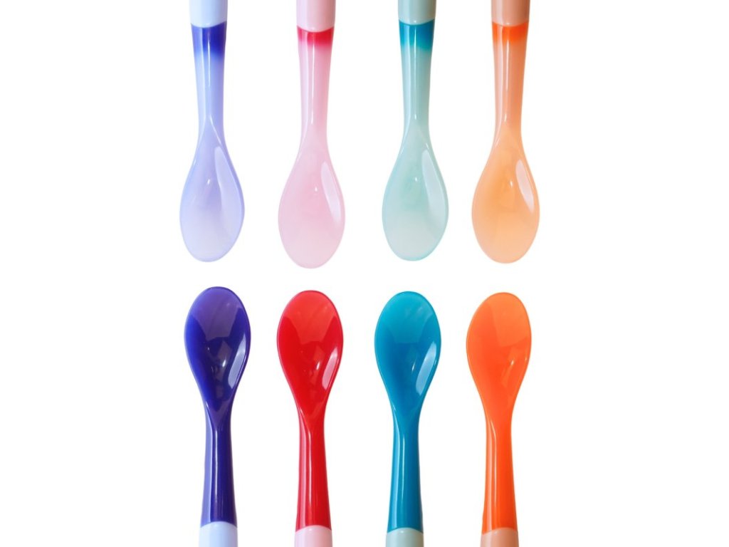 - farebné termolyžičky, ktoré zmenia farbu, ak je pokrm príliš horúci (nad 37°C)