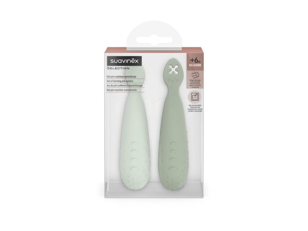 Silikónové lyžičky na učenie Suavinex - pre prvé krôčiky k samostatnému jedlu.