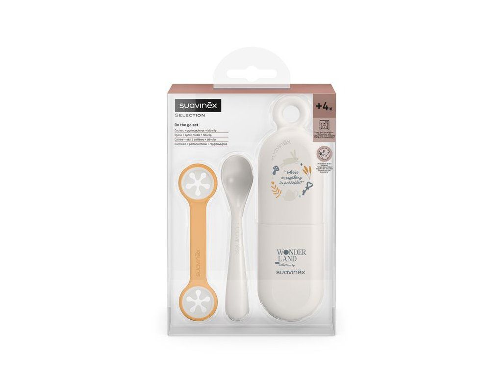 Set na cesty je základným príslušenstvom pre ľahšie kŕmenie mimo domov. Obsahuje ergonomicky tvarovanú lyžicu pre detskú výživu, polievku a iné jedlo polotekutej konzistencie a tiež špeciálnu sponku, ktorá vám zaručí, že dokážete aj z obyčajného obrúska vykúzliť toľko potrebný podbradník. Vďaka praktickej krabičke budete môcť lyžicu prepravovať hygienicky a po jedle ju ušpinenú bezpečne odložiť. Vhodné do umývačky riadu. Balenie: lyžička - 1 ks, sponka - 1 ks, púzdro - 1 ks. Odporúčaný vek: +4 mesiace. Vyrobené v rámci EÚ. Všetky výrobky sú bez BPA, klinicky testované a vyrobené španielskym farmaceutickým výrobcom.Dodatočné parametre