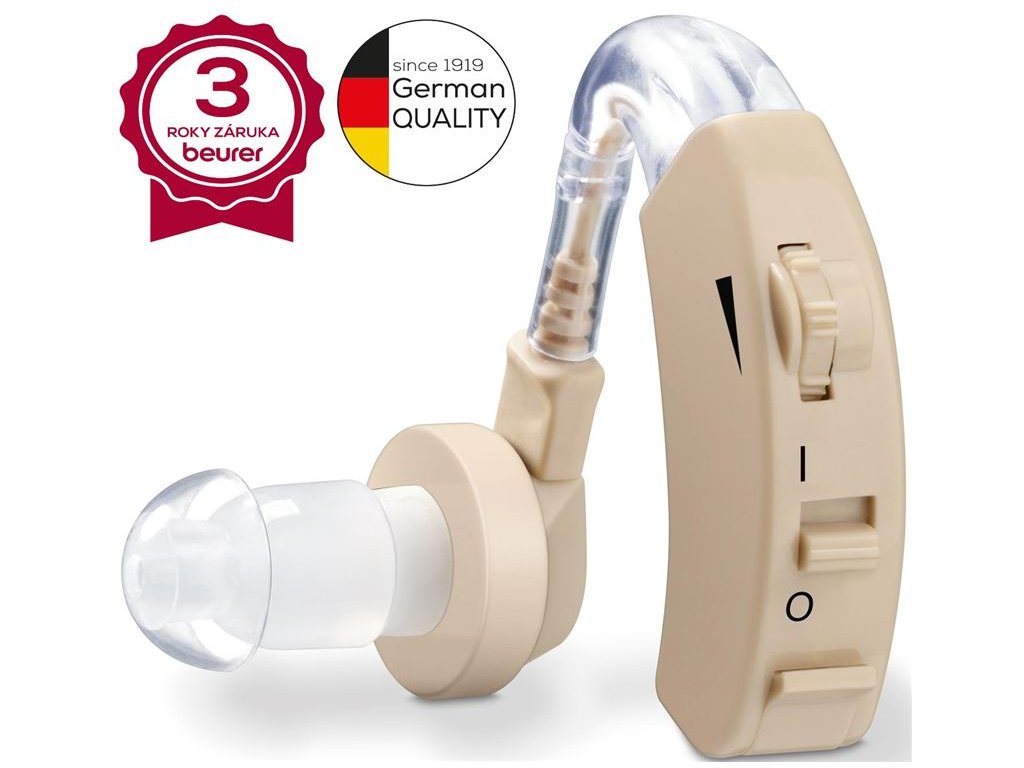 Naslúchadlo Beurer HA 20 je vstupnou bránou do sveta jasného a čistého zvuku.Maximálne zosilnenie 40 db, ergonomický tvar a tri vymeniteľné silikónové krytky do uší ponúknu pohodlné nosenie a telová farba pomáha naslúchadlo maskovať.Charakteristika a technické údaje: naslúchadlo pre ľudí s obmedzeným sluchom ergonomický tvar ideálne pre obmedzené sluchové schopnosti zosilľňuje objem všetkých zvukov v interiéri a vonku zosilnenie zvuku: max. 40 dB maximálny audio výstup: 128 dB frekvenčný rozsah: 200-5000 Hz rozmer výrobku: 40 x 40 x 12 mm vr. batérie 2 x 1.4 V PR48 a náhradnej batérie 3 veľkosti vymeniteľných silikónových krytiek do uší telová farba cestovné puzdro hmotnosť produktu: cca 9 gDiskrétny pomocníkNačúvací nástroj vďaka ergonomickému uchyteniu za ucho je sotva viditeľný. Problémy so sluchom vďaka načúvaciemu nástroju môžu byť vyriešené rýchlo a efektívne.Majiteľ si ho vďaka štyrom nástavcom sám prispôsobí podľa svojich potrieb. Diskrétneho pomocníka si môžete kdekoľvek vziať so sebou v šikovnom úložnom boxe.Načúvacie prístroje od nemeckého špecialistu Beurer podporujú sluchové schopnosti ľudí. Zosilňujú zvuky a potom ich prenášajú do ucha. Či už ste v kine, rozprávate sa s priateľmi alebo sa prechádzate v lese - zosilňovače sluchu Beurer vám pomôžu znova jasne počuť. Počujte znova nahlas a zreteľne!Dodatočné parametre
