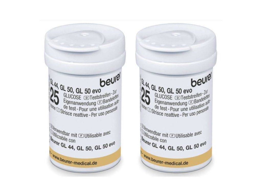 Testovacie prúžky pre glukomery Beurer GL44, GL50 a GL50 EVO.meranie možné len s dostatočnou vzorkou krvikontrolované inštitútom diabetesu v Karlsburguotvorené môžu byť max. 90 dní (do dátumu expirácie)vo 2 nádobkách po 25 testovacích prúžkovSkladovanie: Teplota: + 4 ° C až + 40 ° C, vlhkosť: 10% až 85%, neskladujte v chladničkePrevádzka: Teplota: + 10 ° C do + 40 ° C, vlhkosť: 10% až 85%Jazykový okruh: D,GB,FR,ES,IT,GR,DK,SE, FIN,ARAB,TR,RUS,PL,NL, SLO,CZ,SK,HU,HR,ROM464.14Dodatočné parametre