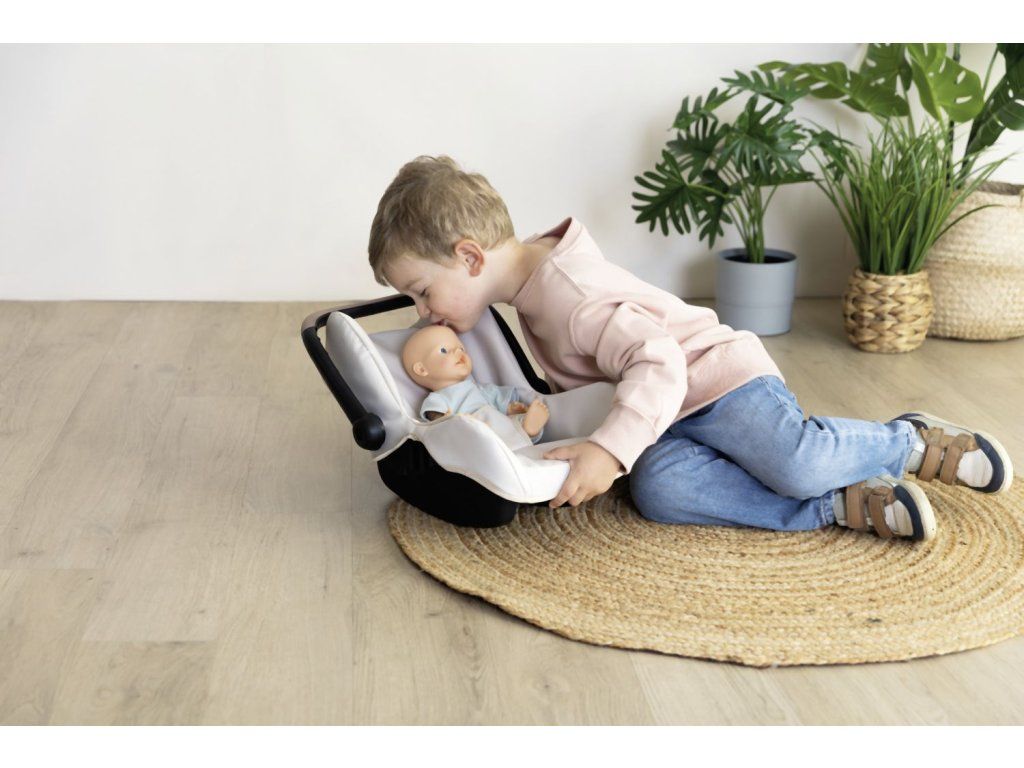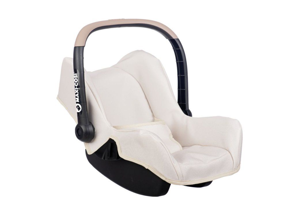 Autosedačka s rukoväťou v originálnom dizajne Maxi-Cosi s béžovým látkovým poťahom a bezpečnostným pásom. S úložným priestorom na zadnej strane sedadla. Možno nasadiť na podvozok kočíka (nie je súčasťou). Vhodné pre bábiky do veľkosti 42 cm. Rozmery produktu (DxŠxV): 47 x 32 x 35 cm.Dodatočné parametre