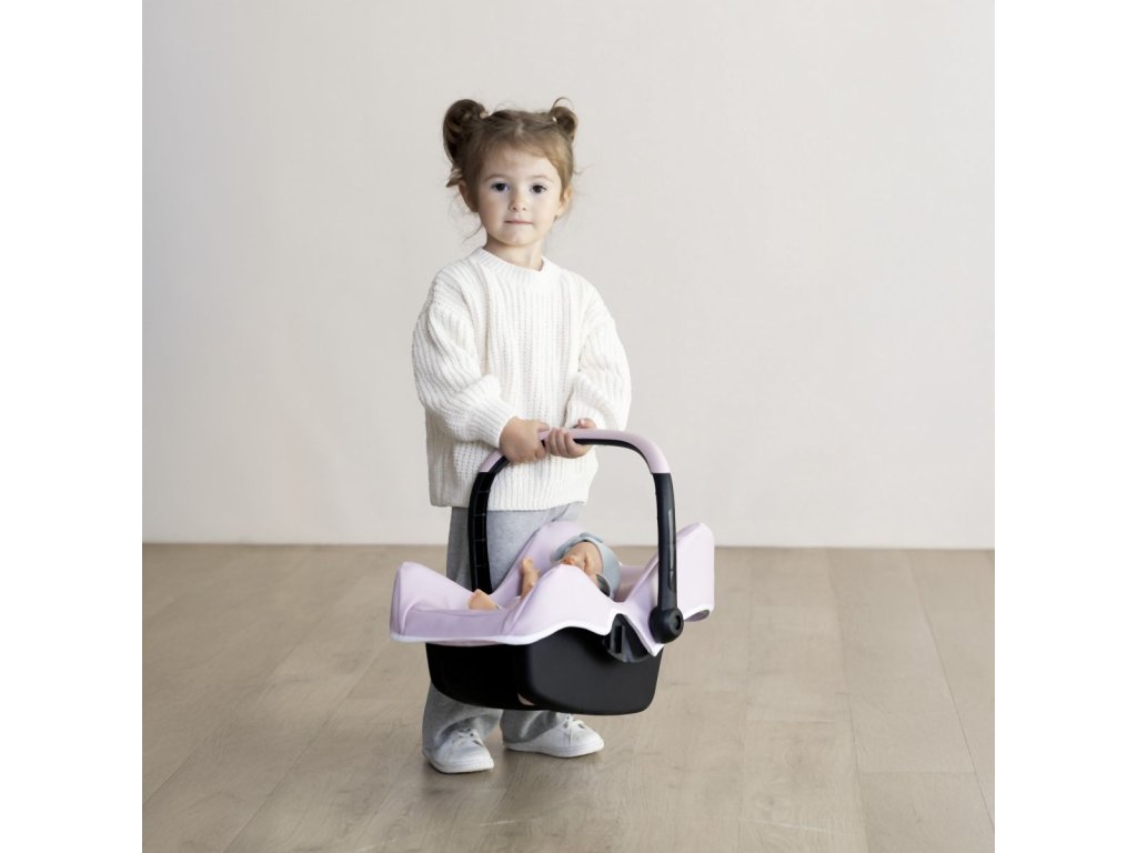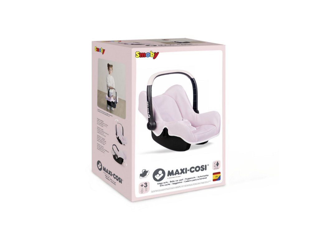 Autosedačka s rukoväťou v originálnom dizajne Maxi-Cosi so svetlo ružovým látkovým poťahom a bezpečnostným pásom. S úložným priestorom na zadnej strane sedadla. Možno nasadiť na podvozok kočíka (nie je súčasťou). Vhodné pre bábiky do veľkosti 42 cm. Rozmery produktu (DxŠxV): 47 x 32 x 35 cm.Dodatočné parametre