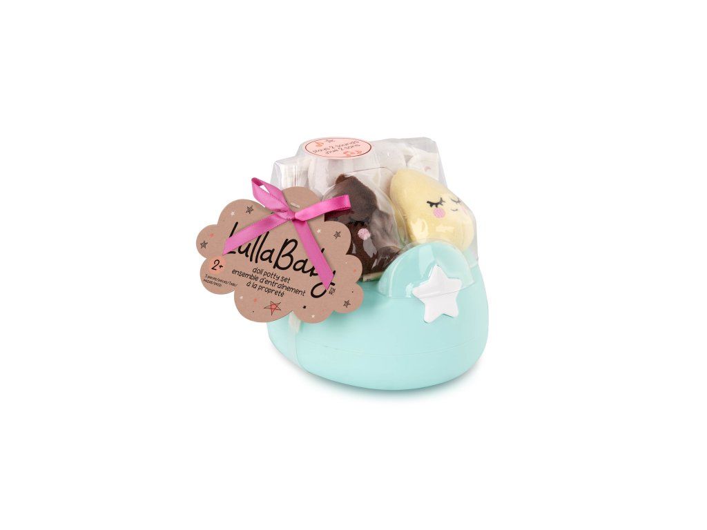 S touto zábavnou tréningovou sadou LullaBaby vaše deti môžu naučiť svoju bábiku chodiť na nočník. Nočník ponúka pre väčšiu zábavu dva veselé zvukové efekty, ktoré podporia hru na každodenné situácie. Súčasťou sady je okrem nočníka plienka, krabička so servítkami a dve plyšové hračky. Sada pomáha počas ošetrujúcej hry rozvíjať jemnú motoriku, predstavivosť aj sociálne zručnosti.
