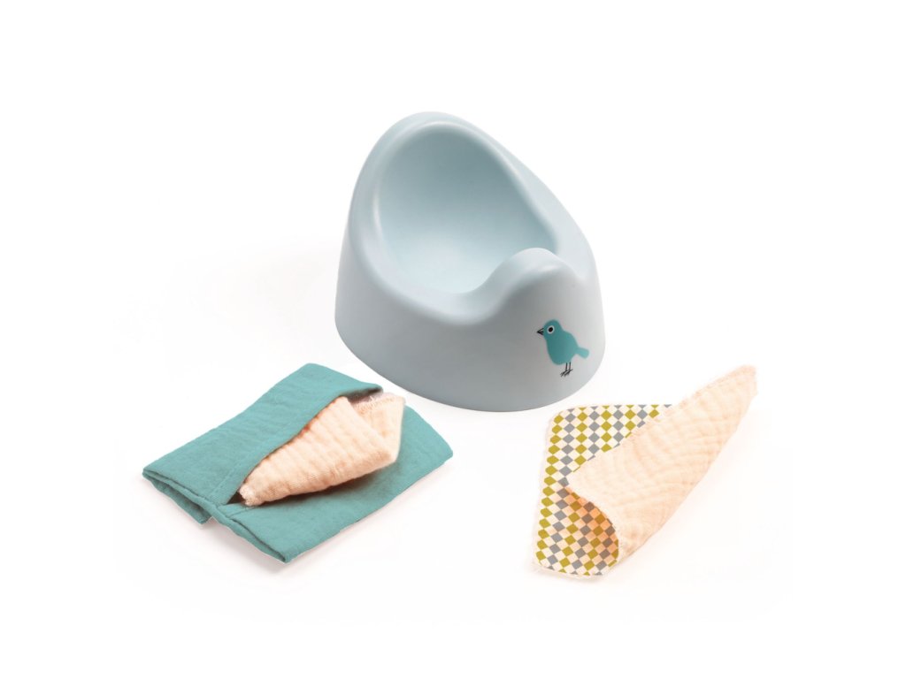 Nočník pre bábiky je milý doplnok k hre na bábätko, vďaka ktorému deti prirodzene napodobňujú každodenné rituály. Bábiku posadia na nočník a po „použití“ ju môžu jemne utrieť mäkkými látkovými utierkami – presne ako pri starostlivosti o skutočné dieťa.