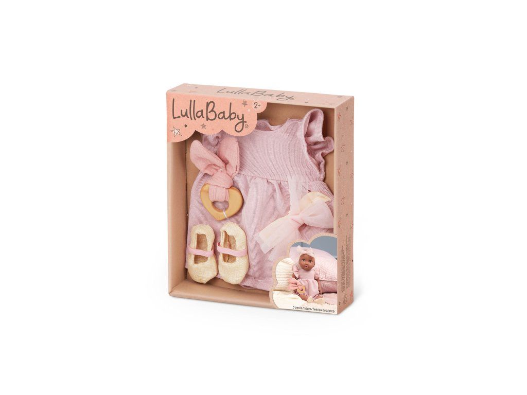 Tento štýlový set pre bábiky LullaBaby obsahuje romantické šatôčky, čelenku, topánočky a hryzátko, vďaka ktorým bude bábika pripravená na deň plný hier a dobrodružstva. Deti si môžu pri obliekaní svojej bábiky rozvíjať jemnú motoriku aj sociálne zručnosti. Šatičky sú navrhnuté s ohľadom na ľahké obliekanie – vďaka jednoduchému zapínaniu to zvládnu aj tí najmenší.