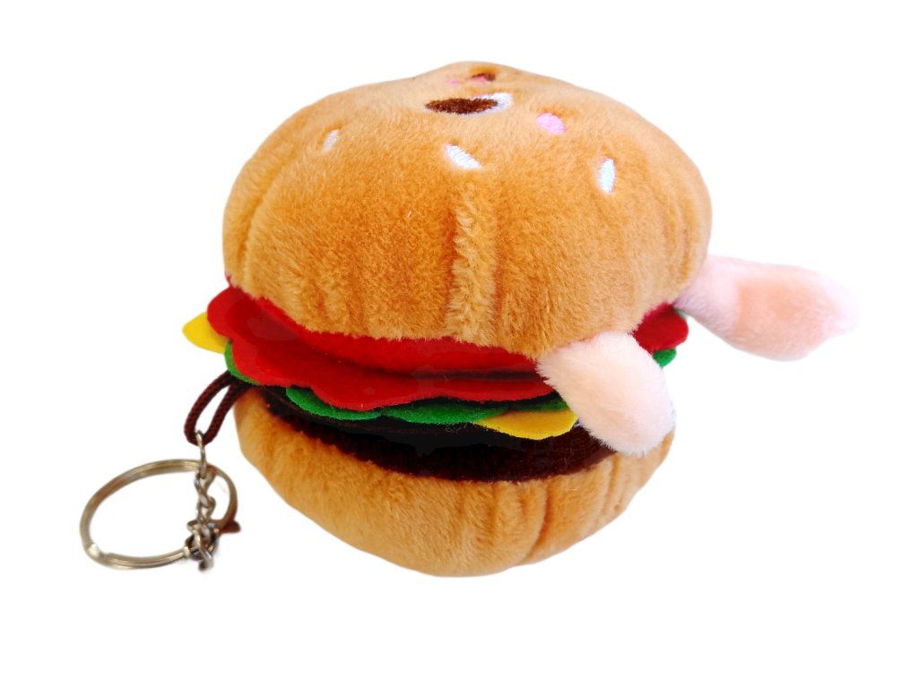 Kľúčenka je vyrobená z mäkkého plyšového materiálu, ktorý je príjemný na dotyk a bezpečný pre deti. Farebné detaily ako list šalátu, paradajka alebo syr dodávajú hamburgeru realistický, ale zároveň hravý vzhľad. Malé nožičky a veselý dizajn ešte viac podčiarkujú jeho roztomilosť.